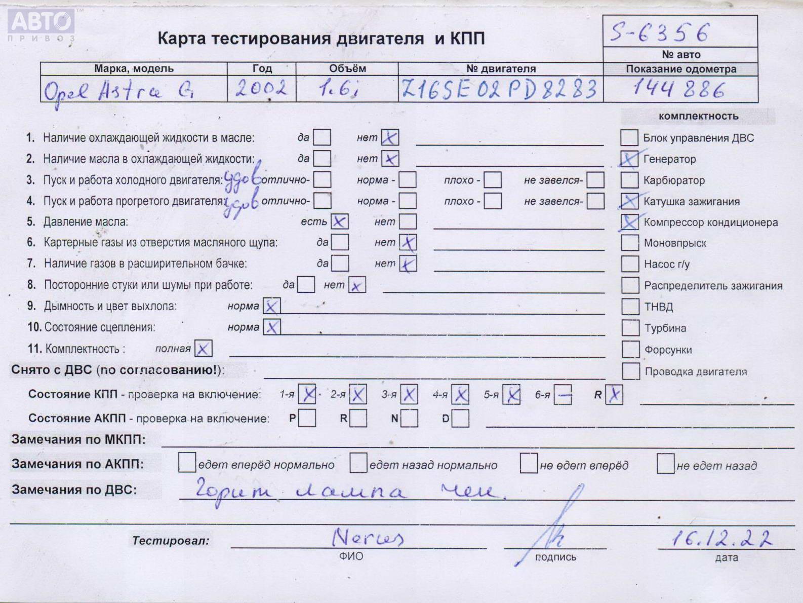 | Марка / Модель / Год: | Opel Astra G (1998-2004) 2002 |