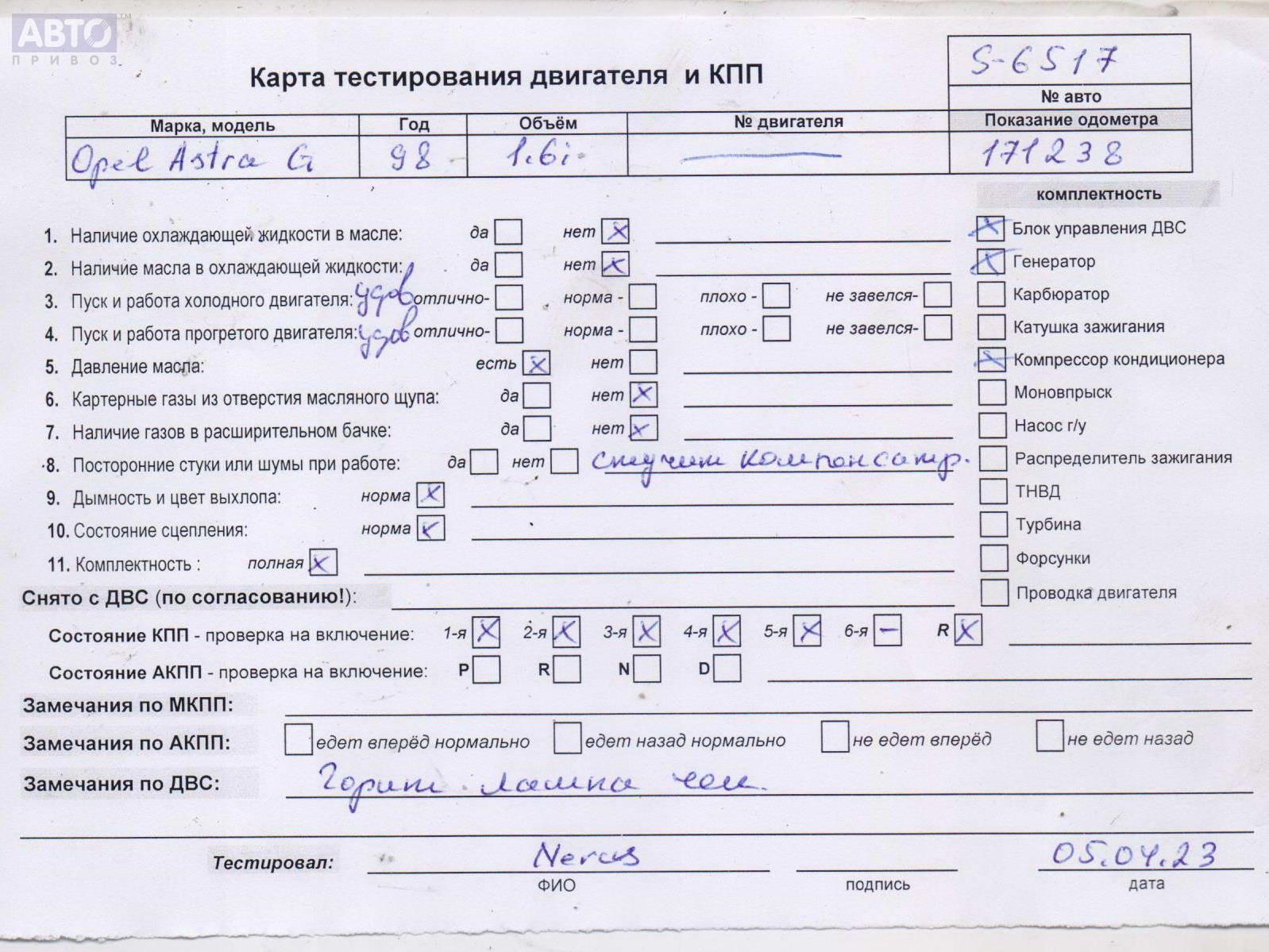| Марка / Модель / Год: | Opel Astra G (1998-2004) 1999 |