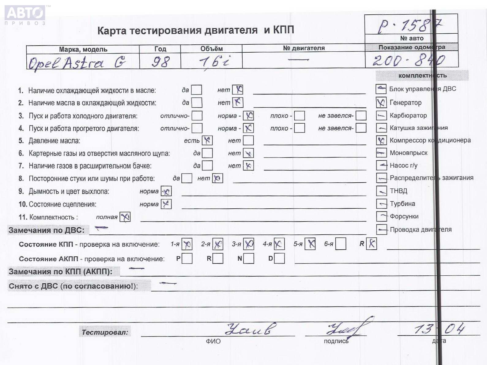 | Марка / Модель / Год: | Opel Astra G (1998-2004) 1998 |
