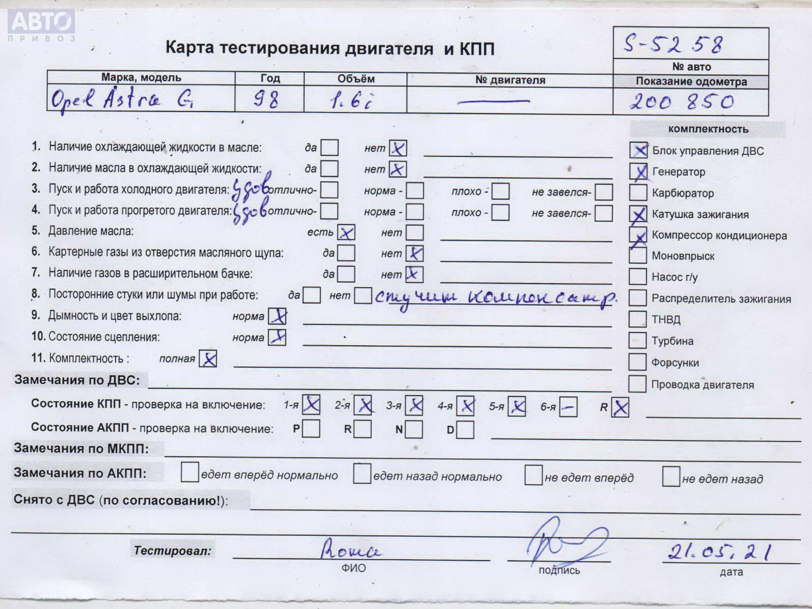 | Марка / Модель / Год: | Opel Astra G (1998-2004) 1998 |