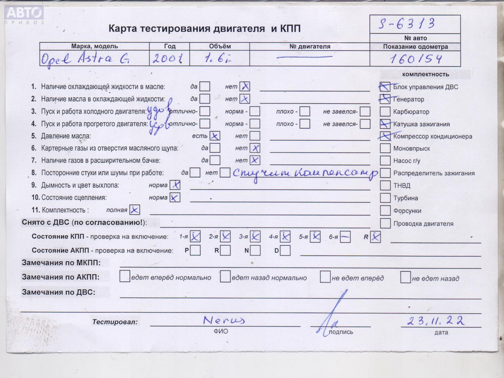 | Марка / Модель / Год: | Opel Astra G (1998-2004) 2001 |