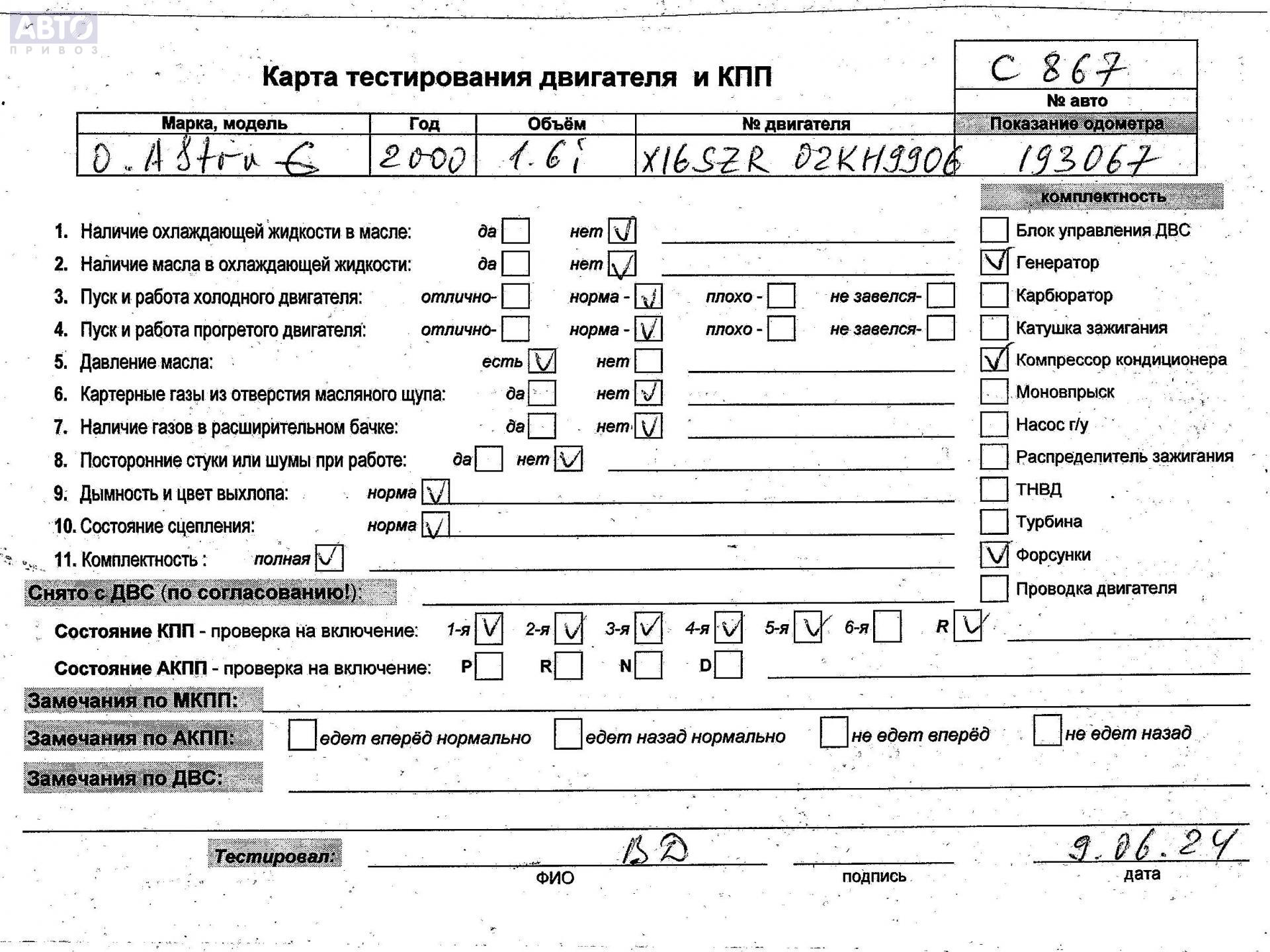 | Автомобиль / VIN: | C0867 W0L0TGF48X6150906 |