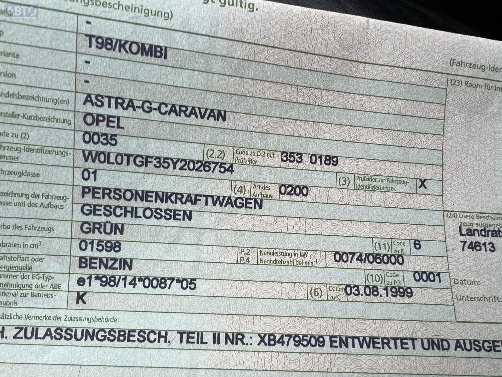 | Марка / Модель / Год: | Opel Astra G (1998-2004) 1999 |