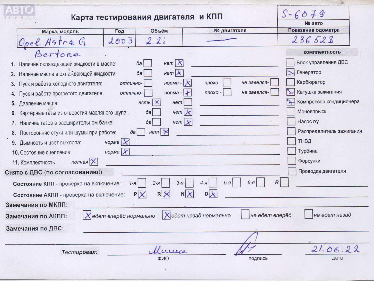 | Двигатель / КПП: | 2.2л Бензин i Авт. |