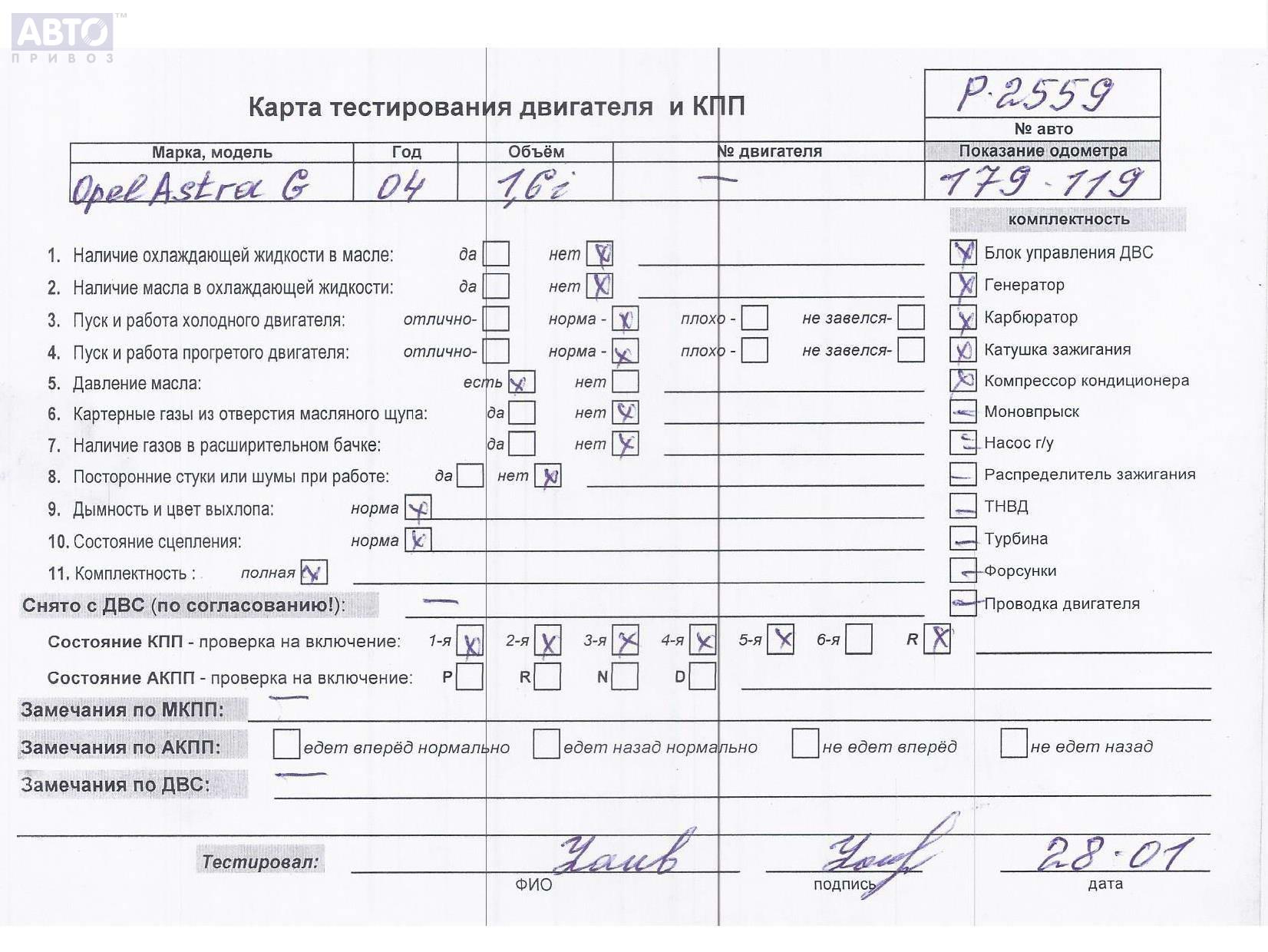| Марка / Модель / Год: | Opel Astra G (1998-2004) 2004 |