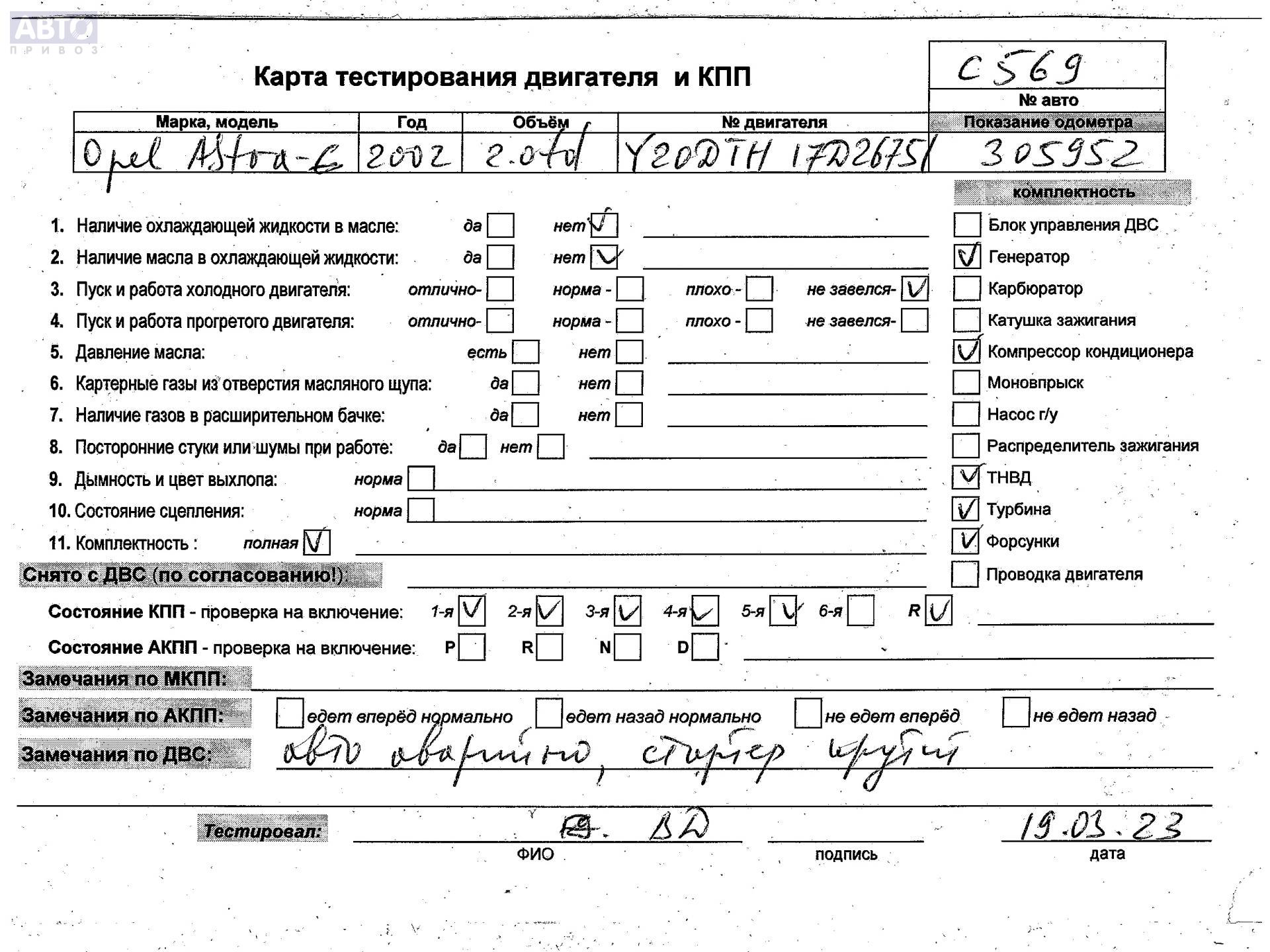 | Марка / Модель / Год: | Opel Astra G (1998-2004) 2002 |