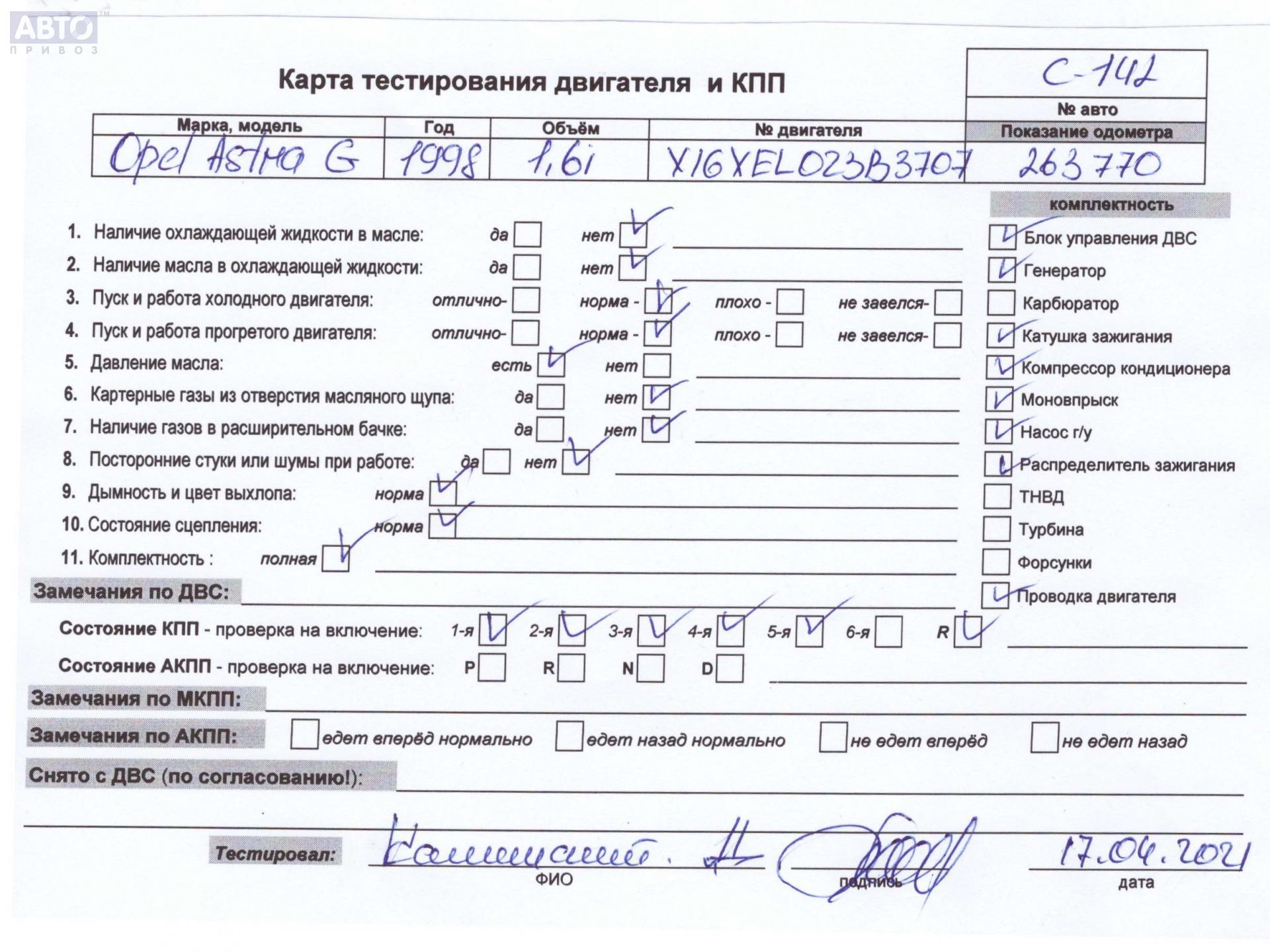 | Марка / Модель / Год: | Opel Astra G (1998-2004) 1998 |