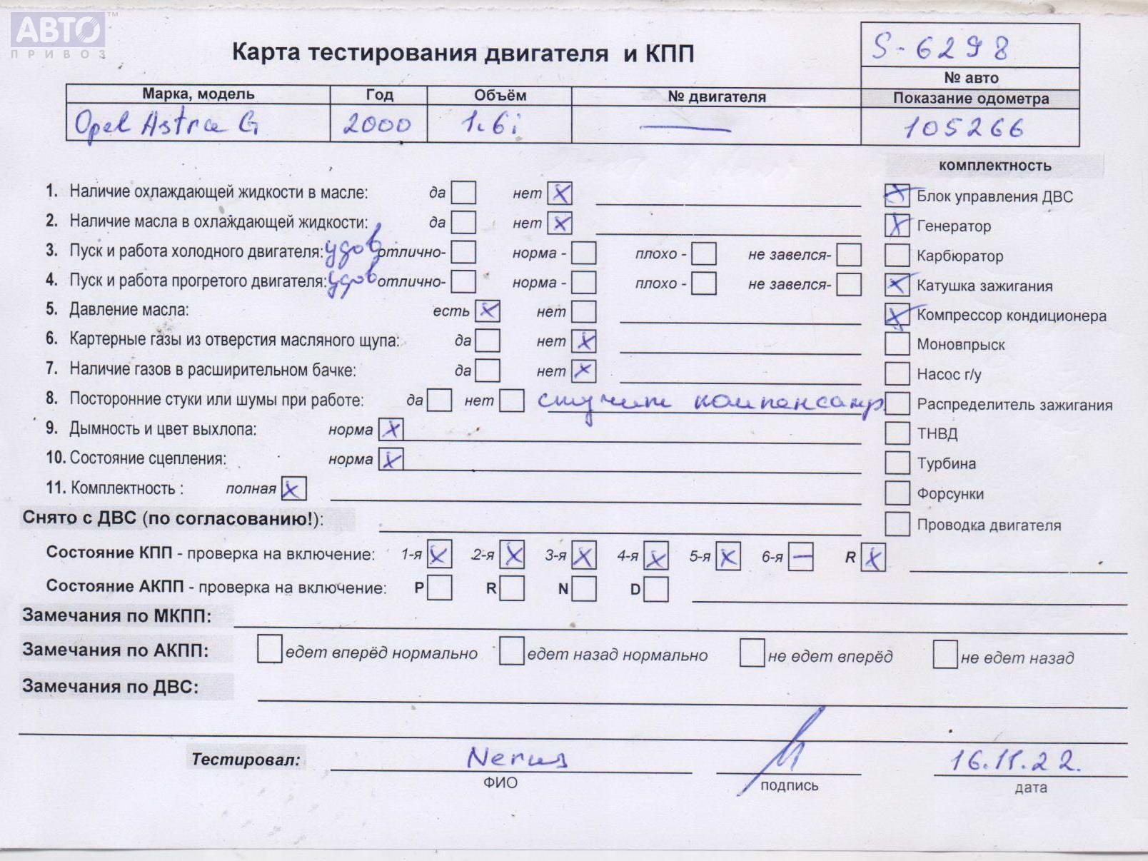 | Марка / Модель / Год: | Opel Astra G (1998-2004) 2000 |