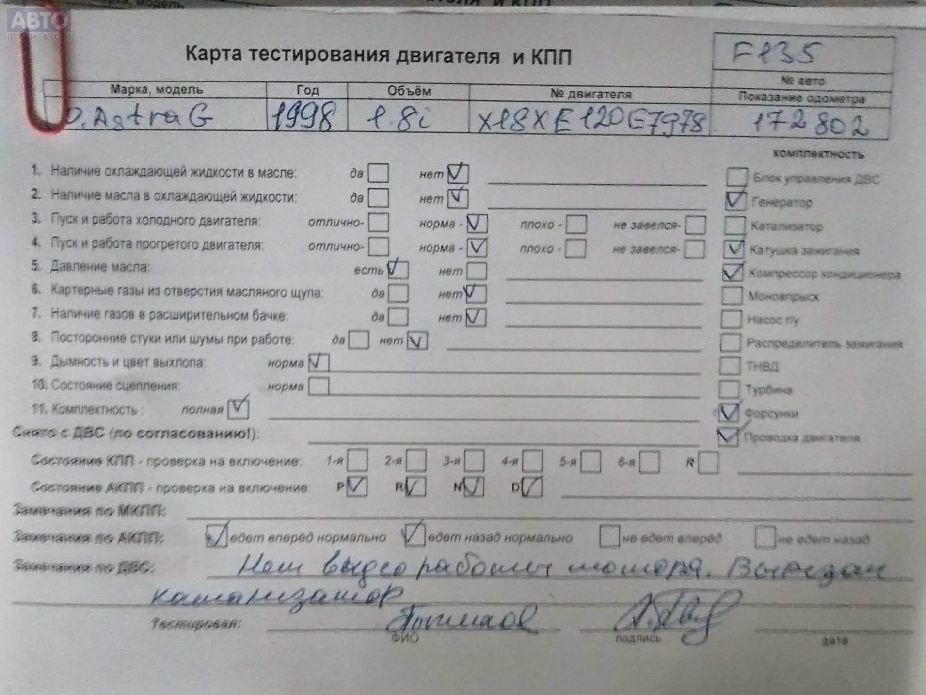| Марка / Модель / Год: | Opel Astra G (1998-2004) 1998 |