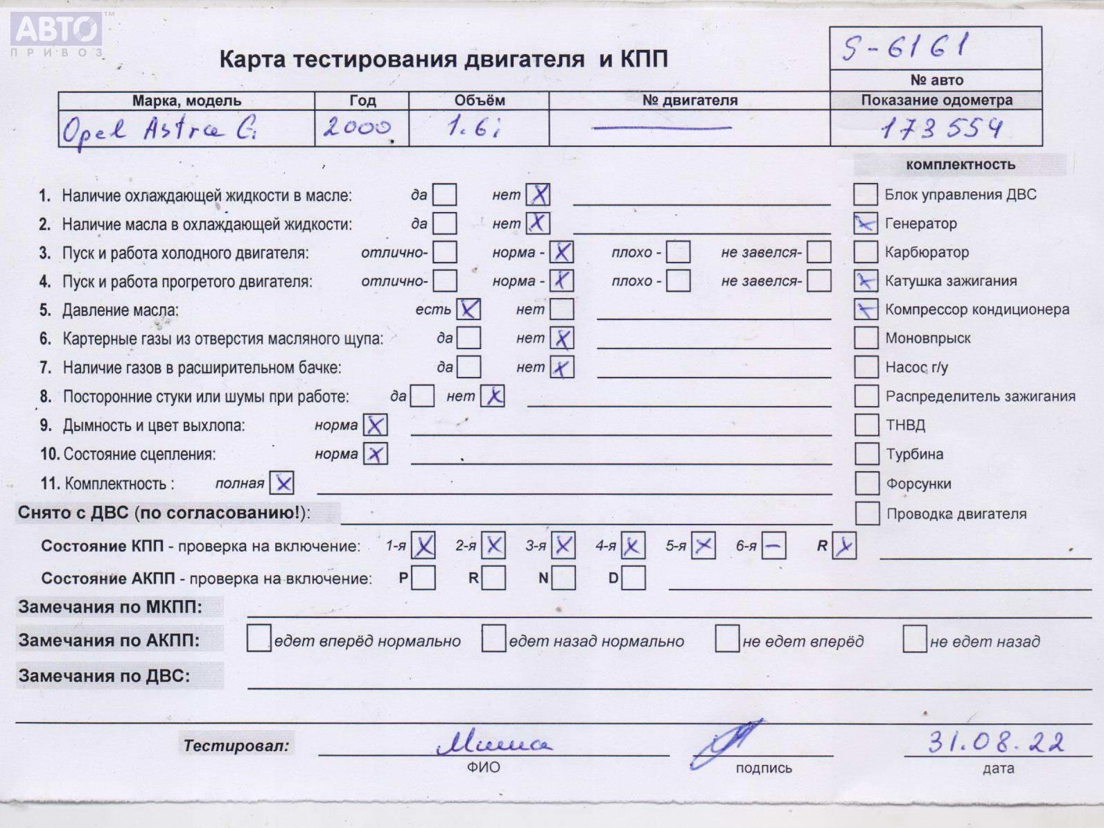 | Марка / Модель / Год: | Opel Astra G (1998-2004) 2000 |