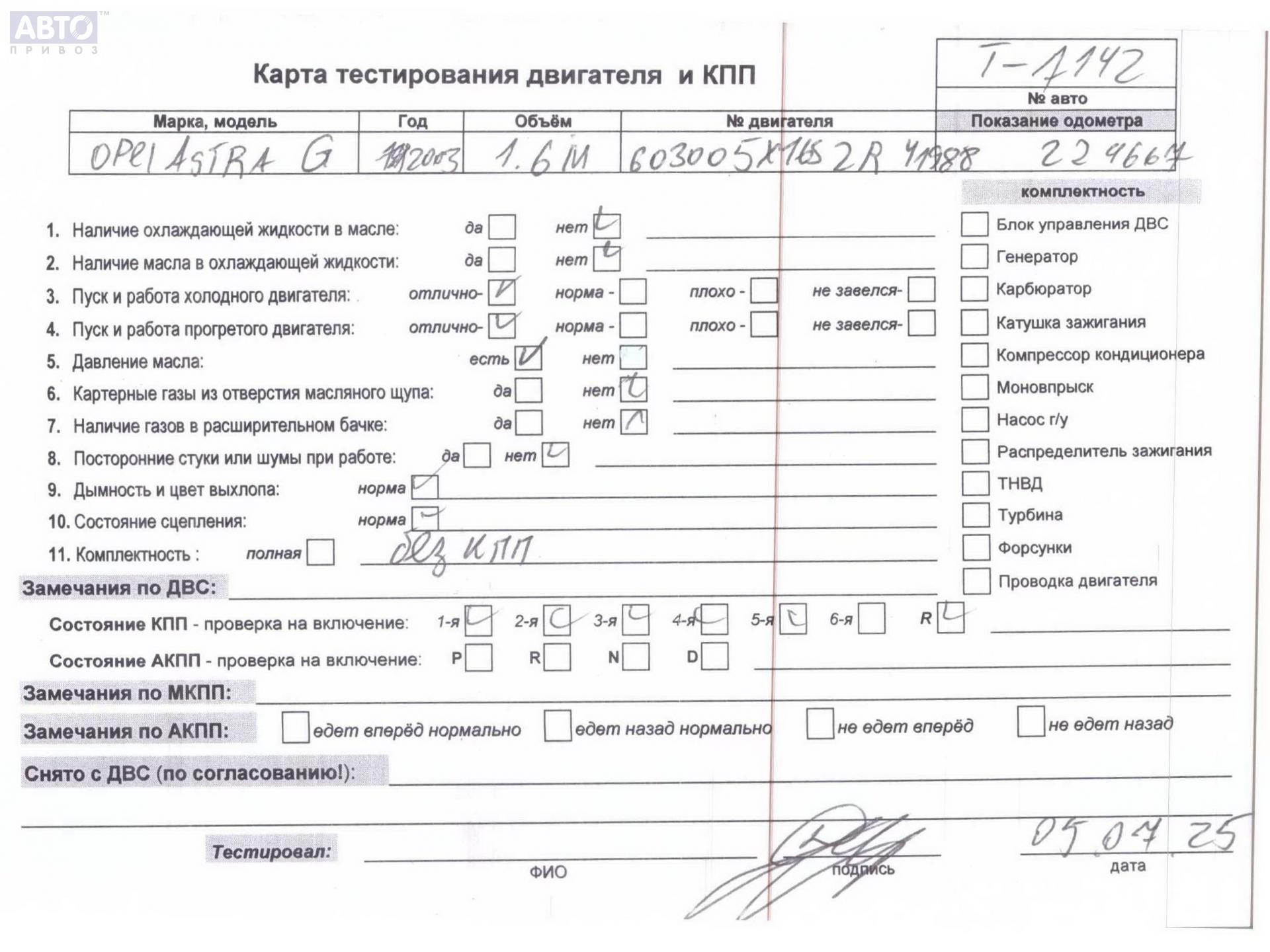 | Марка / Модель / Год: | Opel Astra G (1998-2004) 2000 |