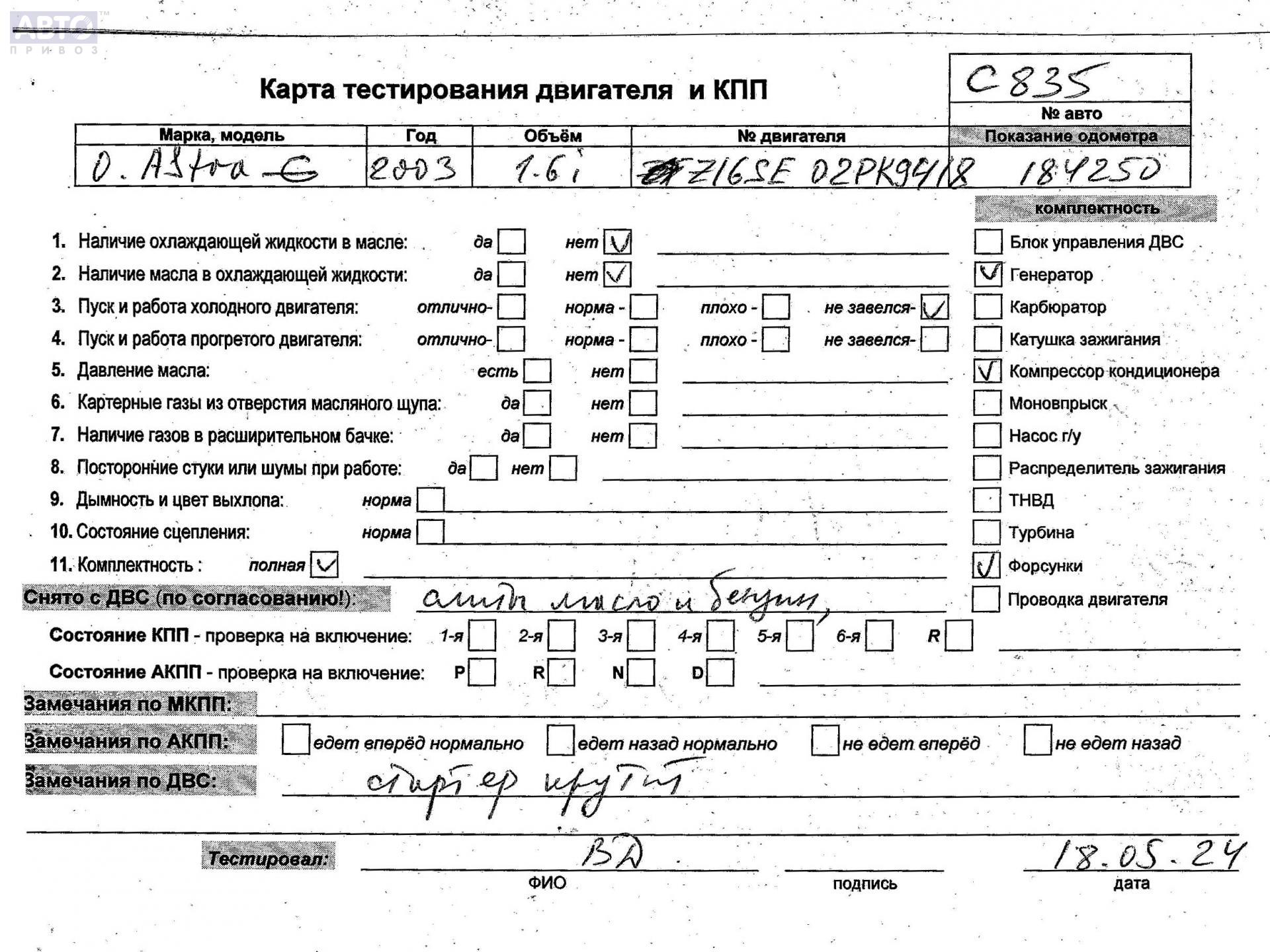 | Марка / Модель / Год: | Opel Astra G (1998-2004) 2003 |