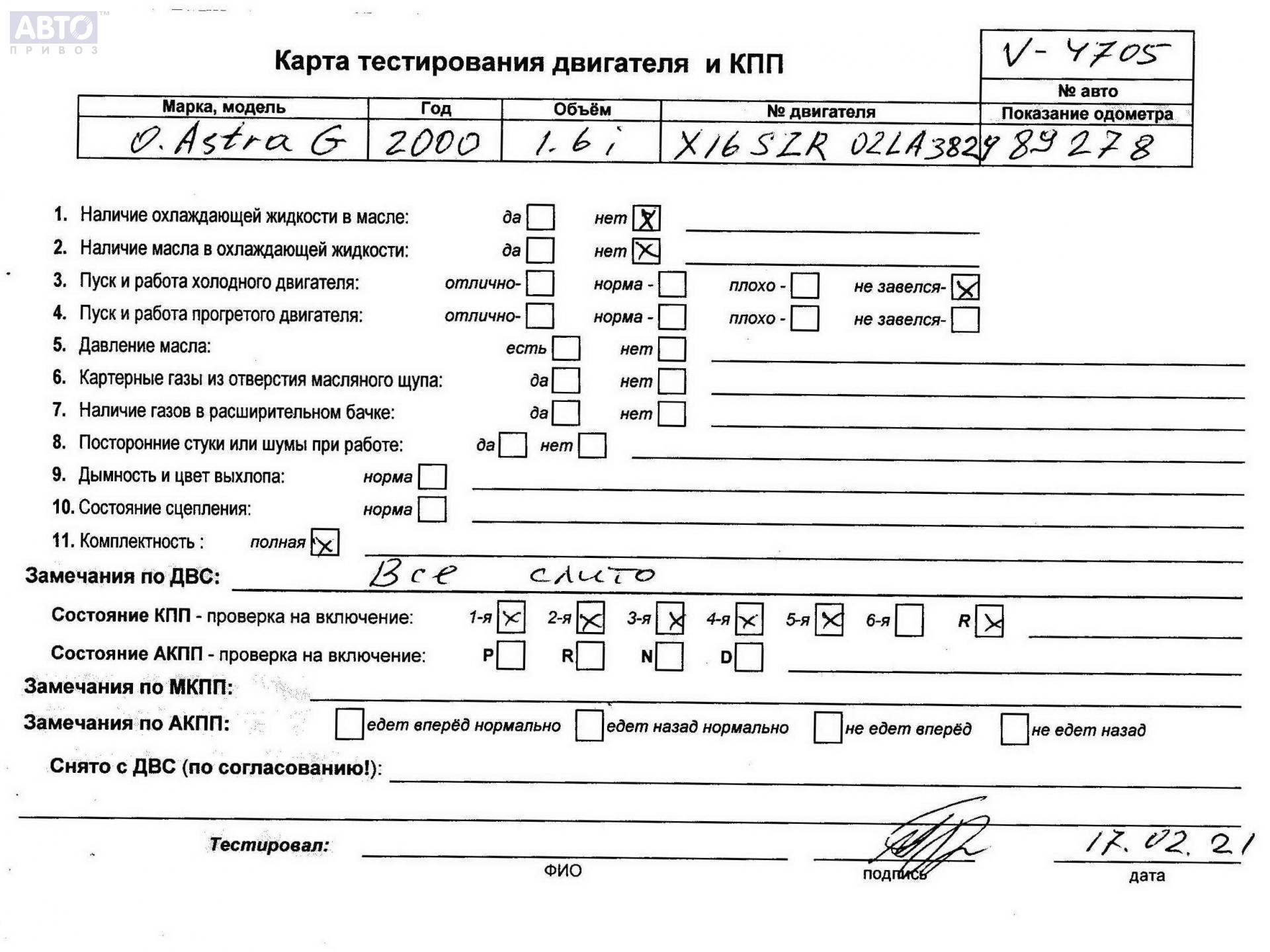 | Марка / Модель / Год: | Opel Astra G (1998-2004) 2000 |