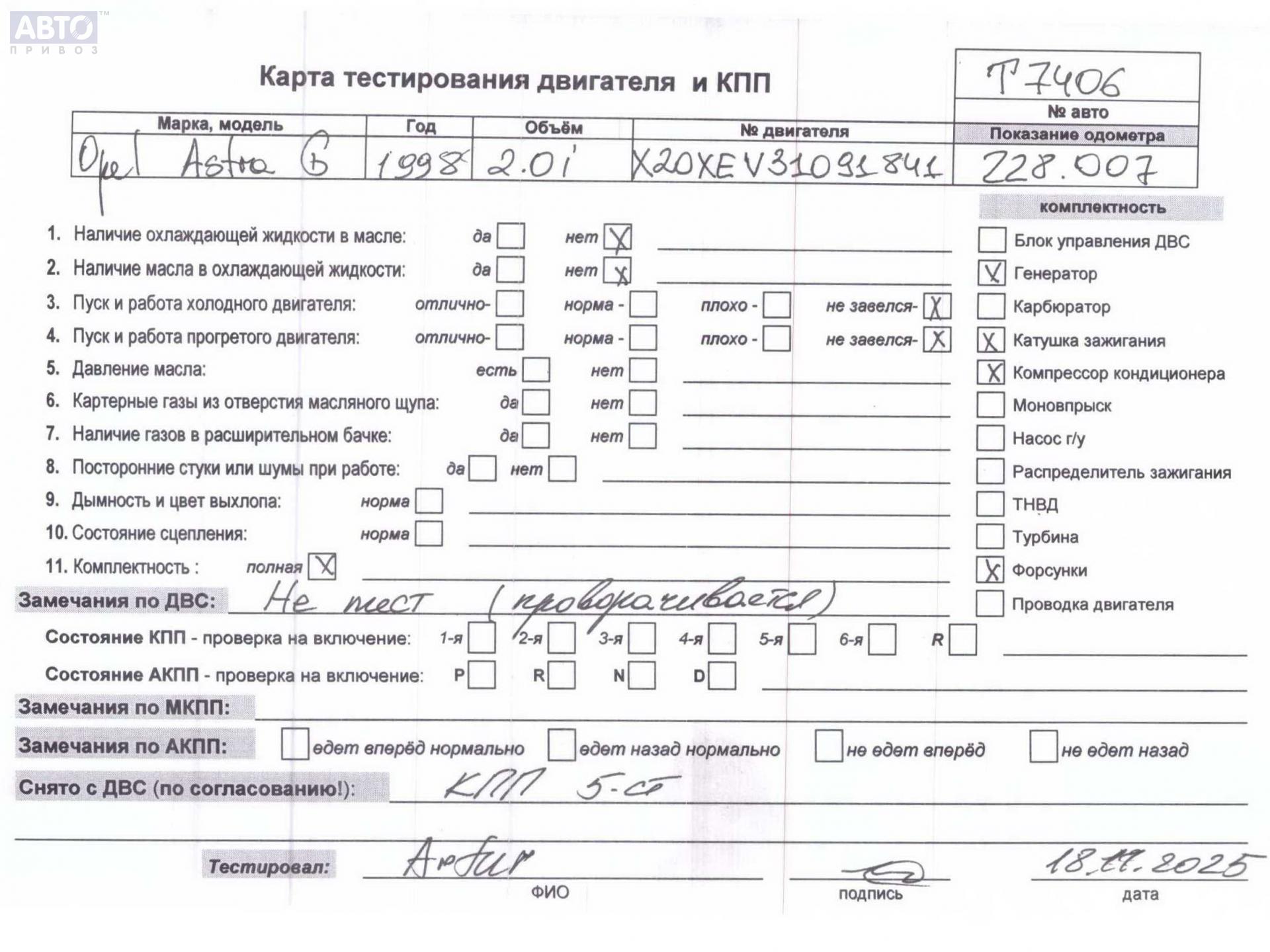 | Марка / Модель / Год: | Opel Astra G (1998-2004) 1999 |