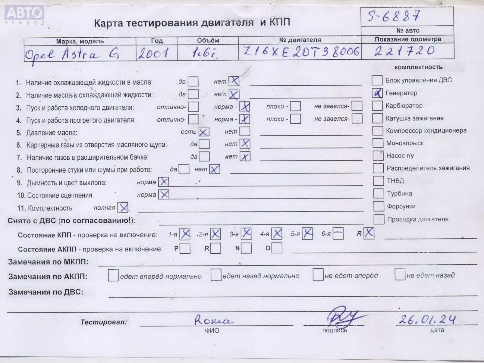 | Марка / Модель / Год: | Opel Astra G (1998-2004) 2001 |