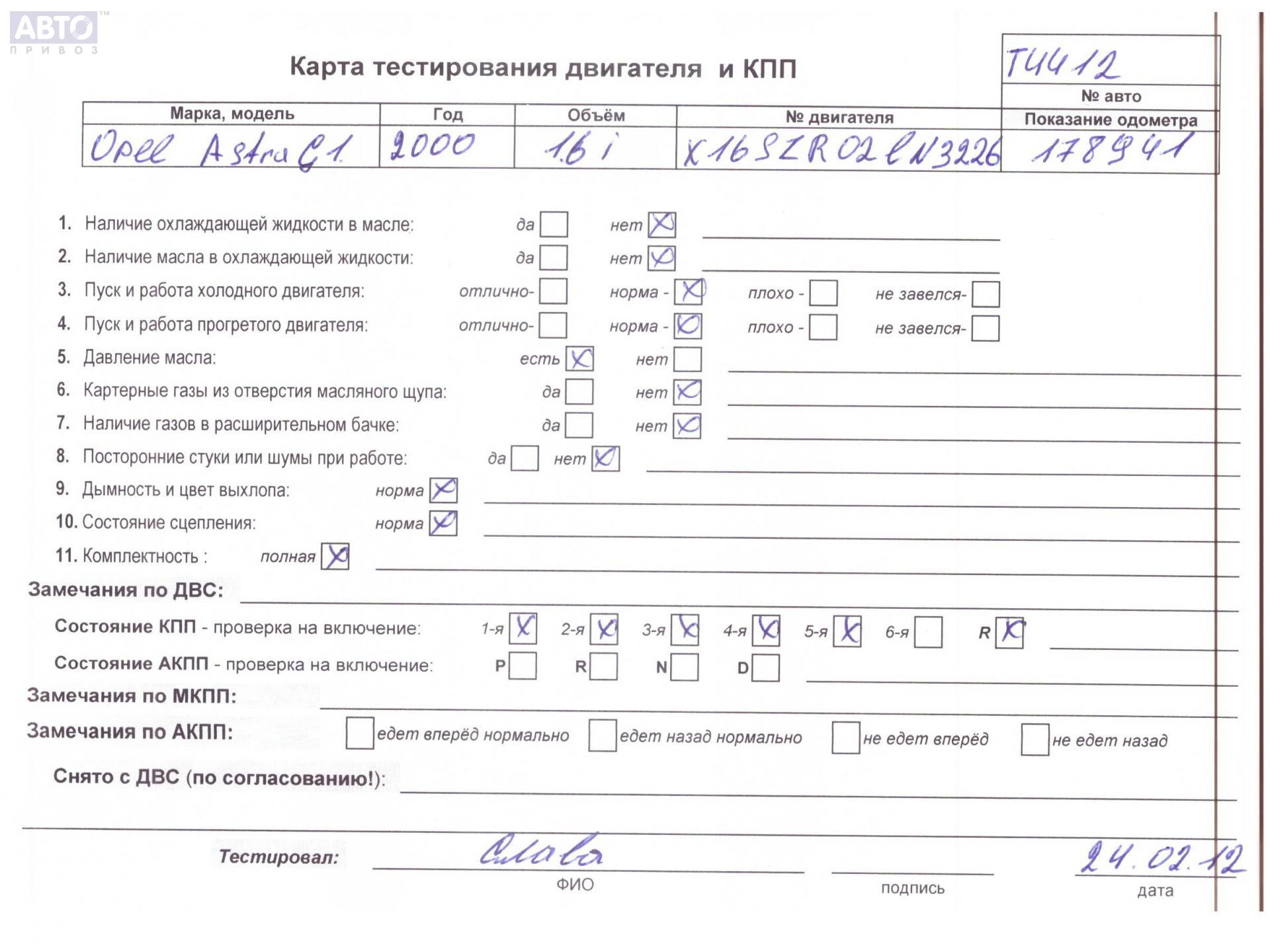| Марка / Модель / Год: | Opel Astra G (1998-2004) 2000 |