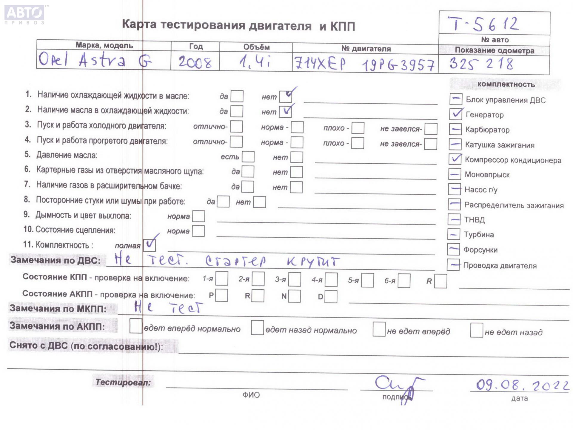 | Марка / Модель / Год: | Opel Astra G (1998-2004) 2008 |