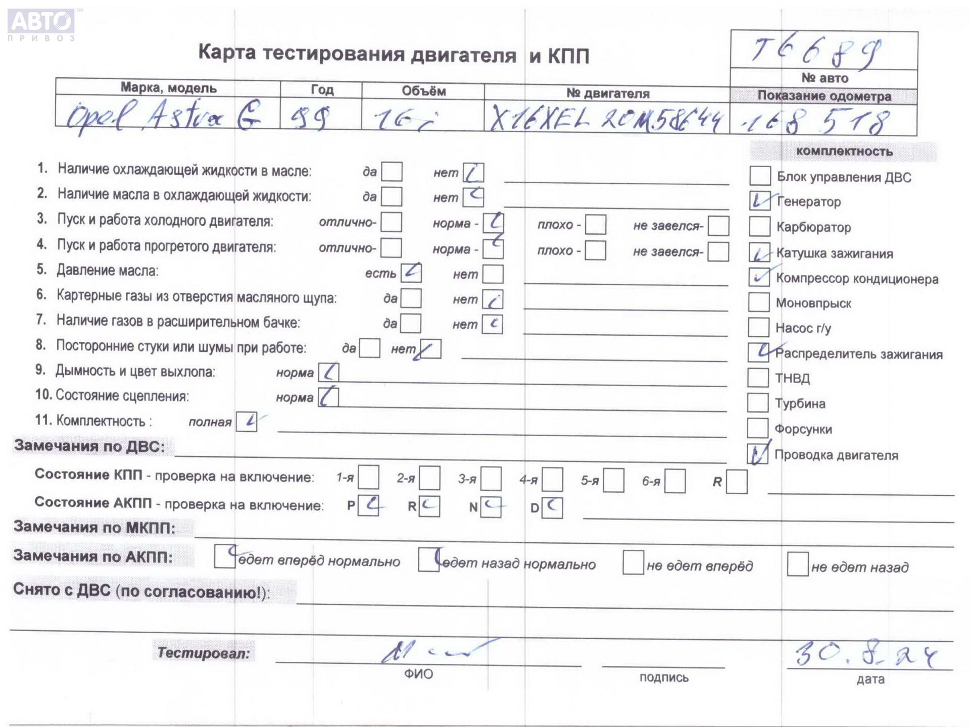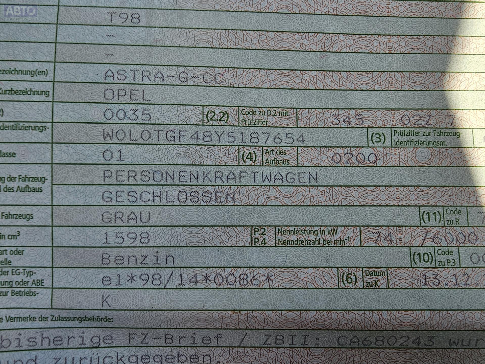 | Марка / Модель / Год: | Opel Astra G (1998-2004) 2000 |