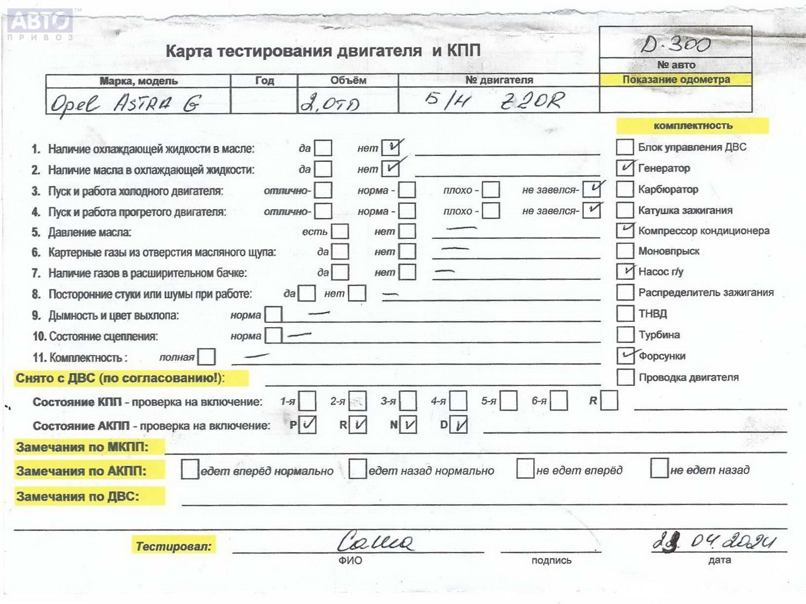| Марка / Модель / Год: | Opel Astra G (1998-2004) 2004 |