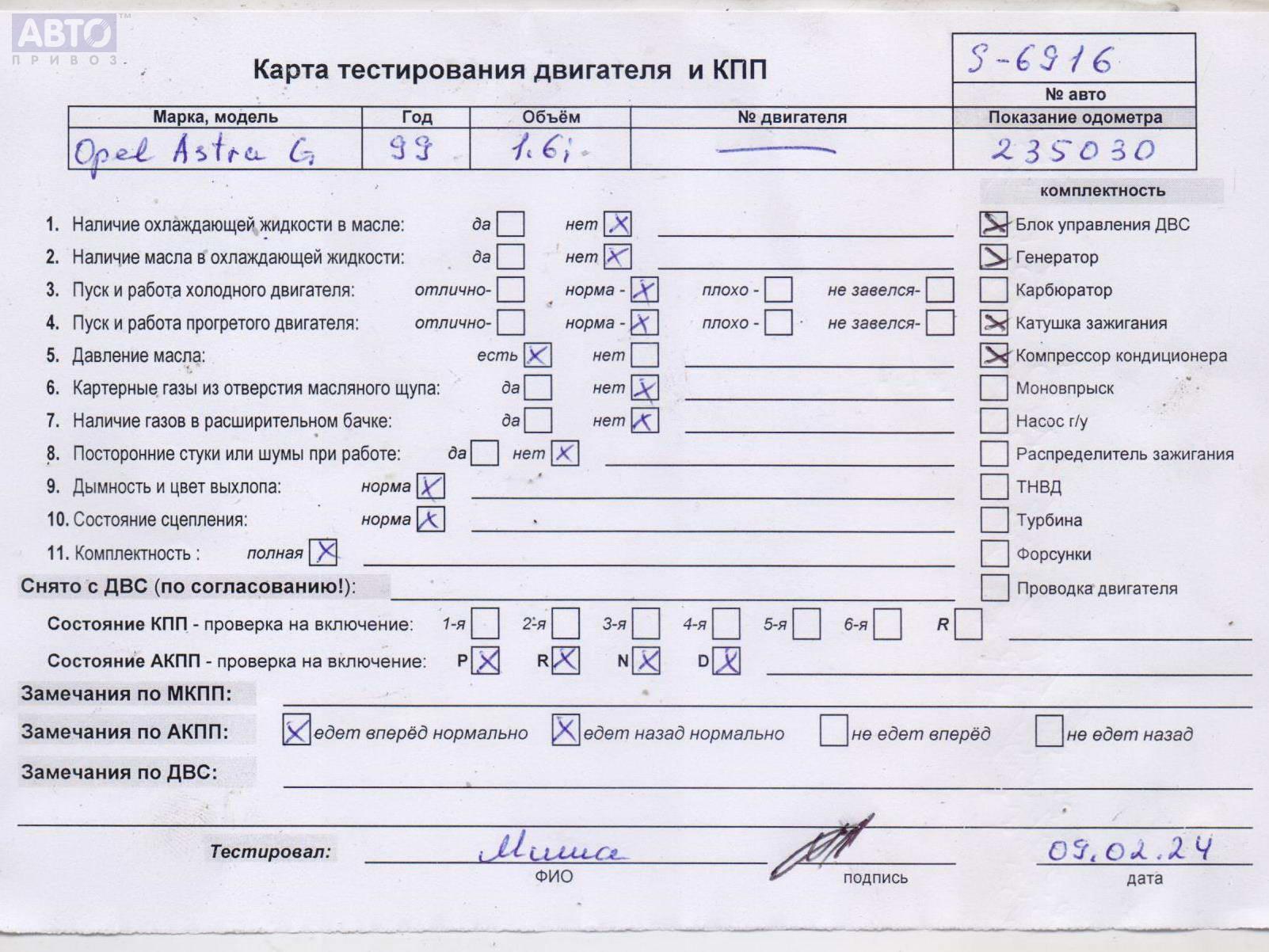 | Марка / Модель / Год: | Opel Astra G (1998-2004) 1999 |