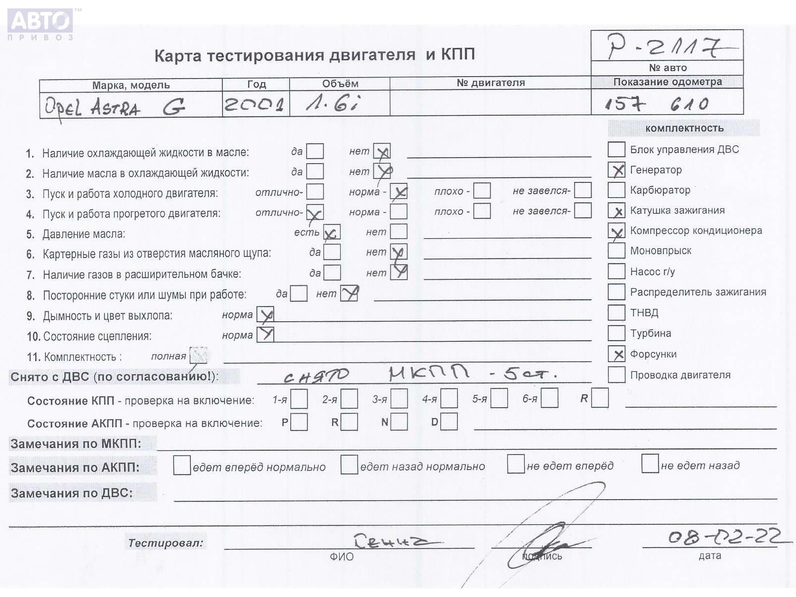 | Марка / Модель / Год: | Opel Astra G (1998-2004) 2001 |