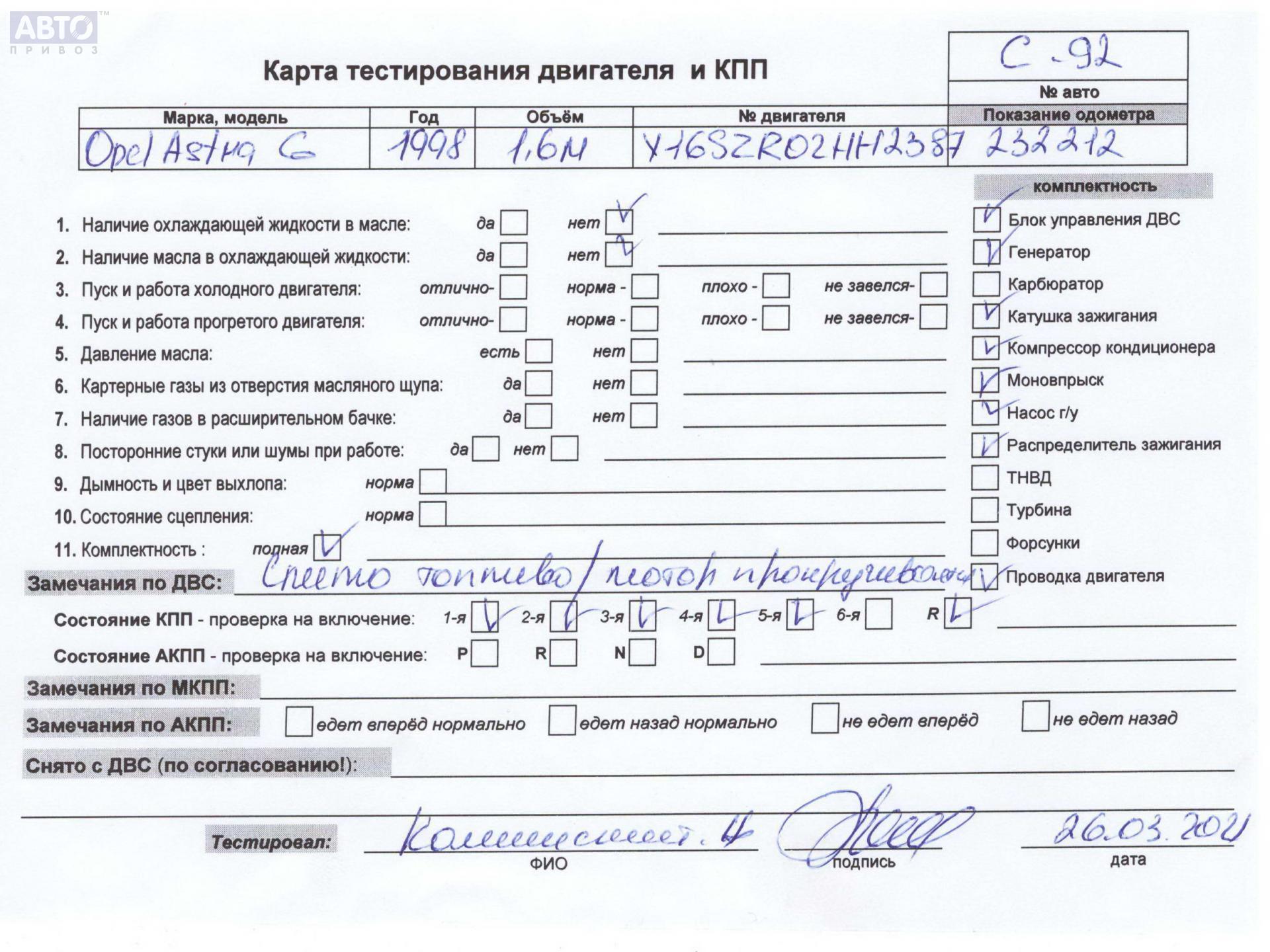 | Автомобиль / VIN: | C0092 W0L0TGF35W2139990 |