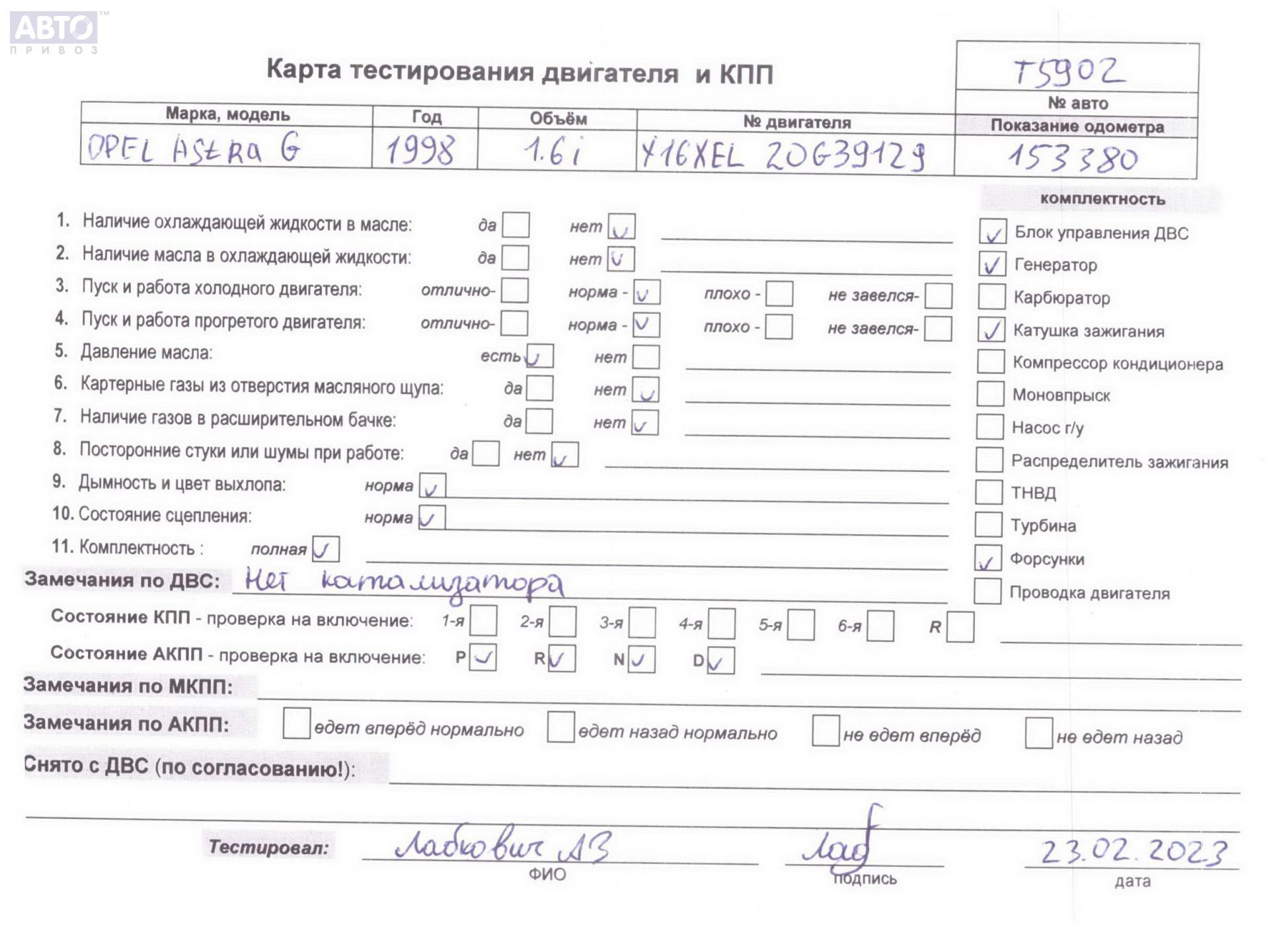 | Марка / Модель / Год: | Opel Astra G (1998-2004) 1998 |