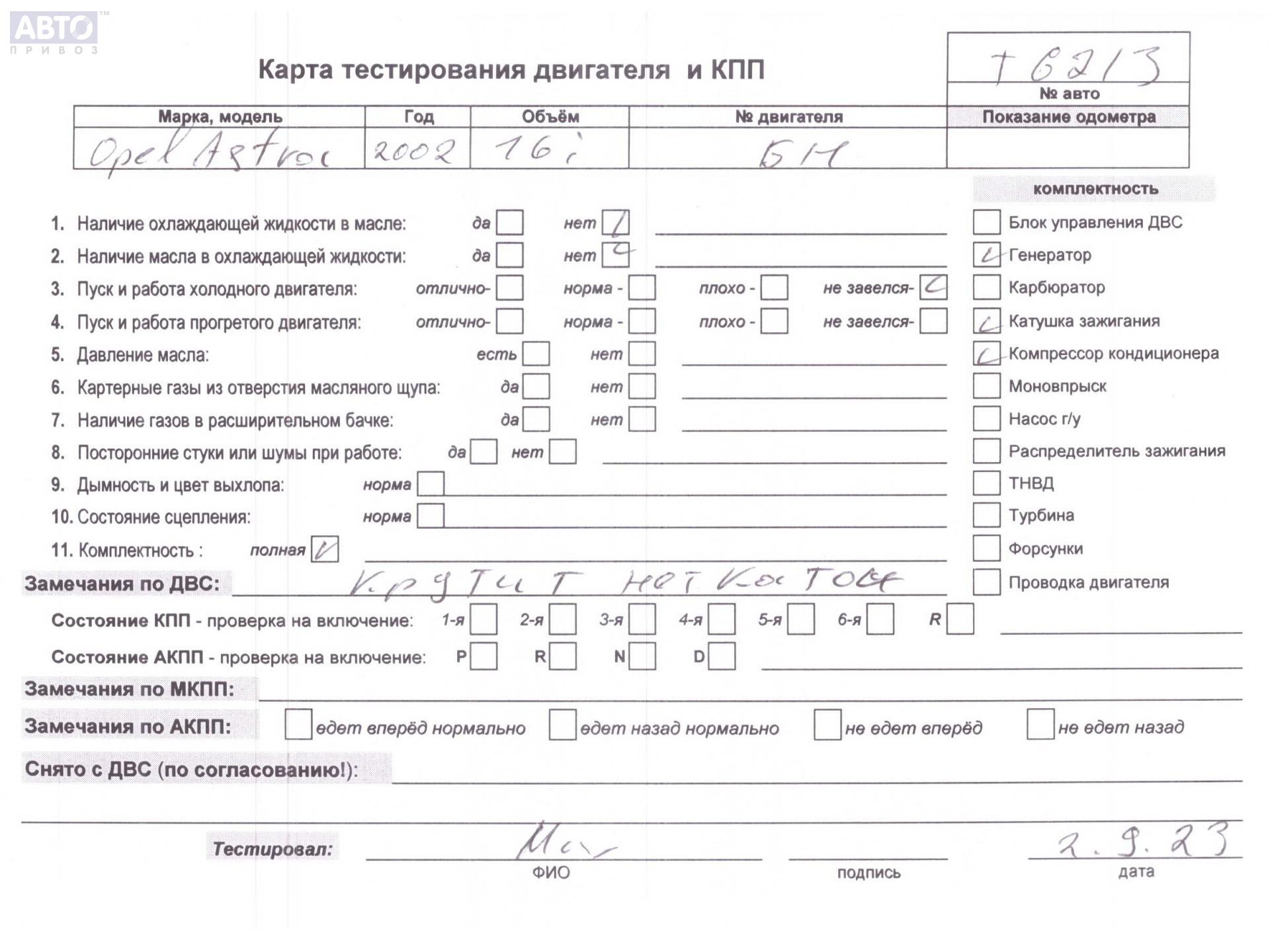| Марка / Модель / Год: | Opel Astra G (1998-2004) 2002 |