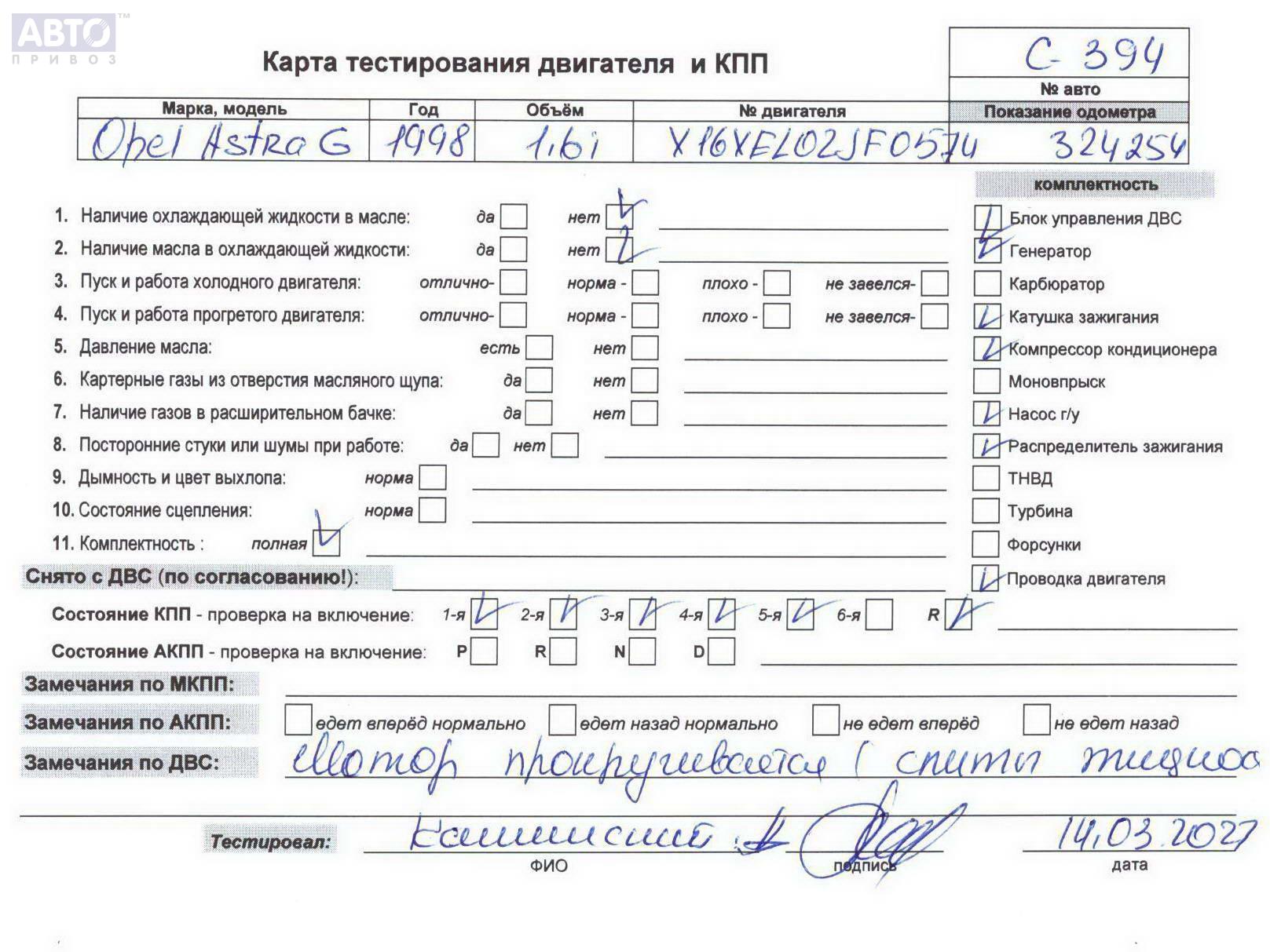 | Марка / Модель / Год: | Opel Astra G (1998-2004) 1998 |
