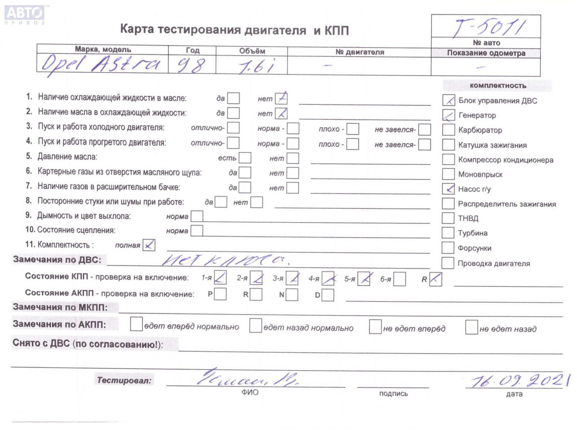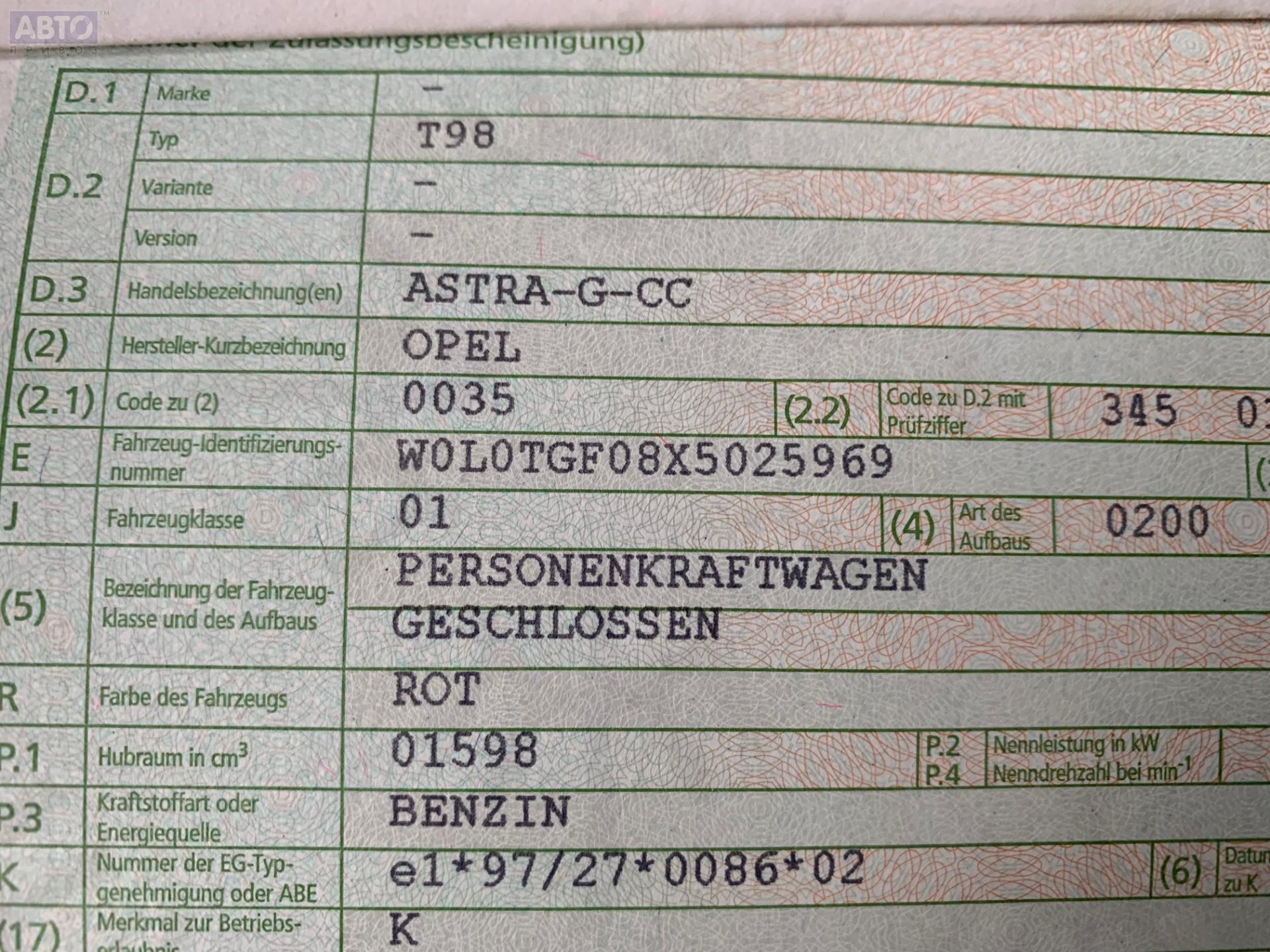 | Марка / Модель / Год: | Opel Astra G (1998-2004) 1998 |