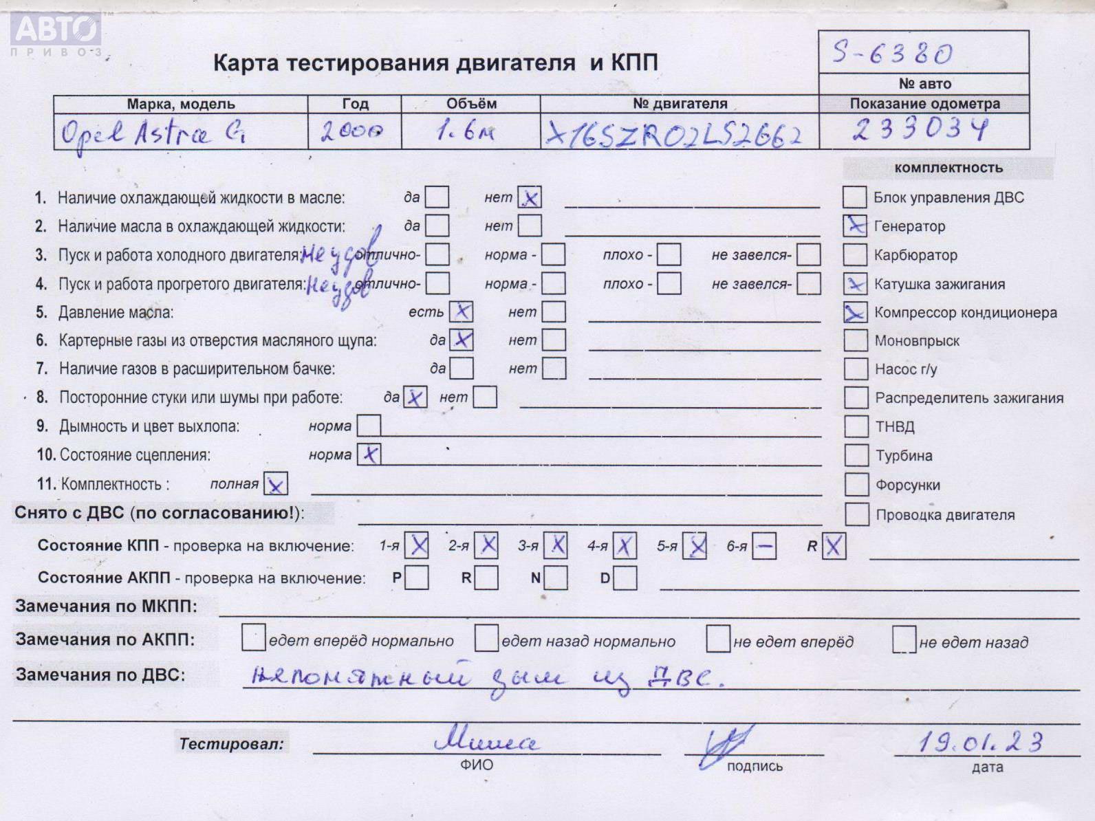 | Марка / Модель / Год: | Opel Astra G (1998-2004) 2000 |