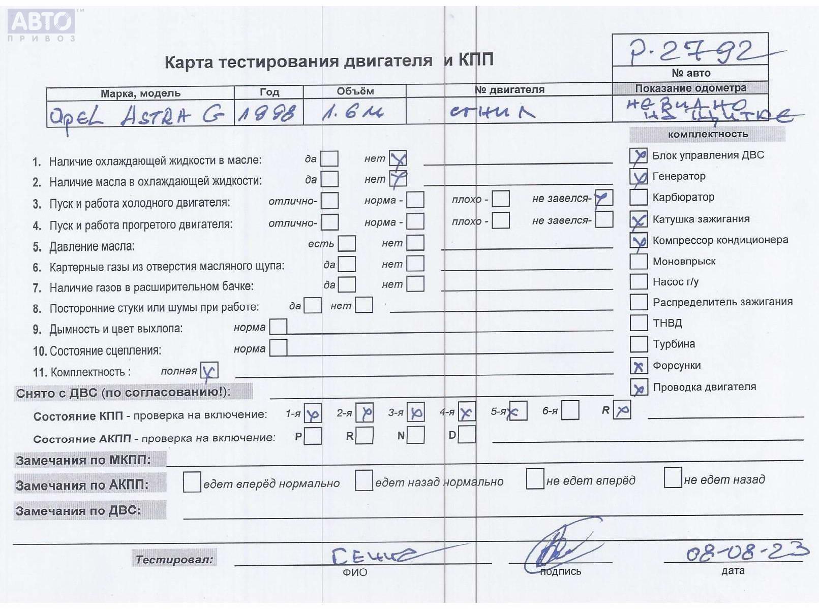 | Марка / Модель / Год: | Opel Astra G (1998-2004) 1999 |