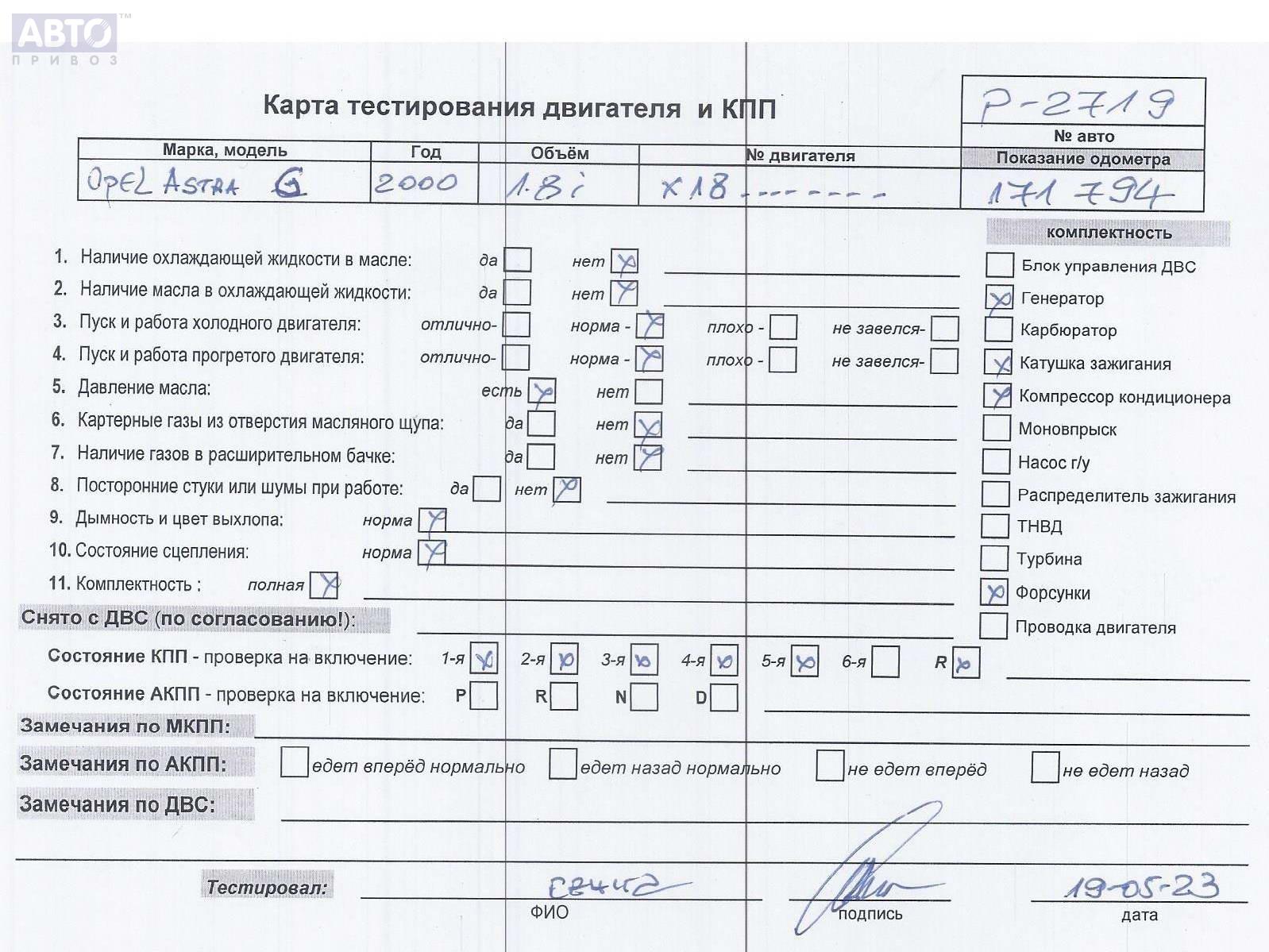 | Марка / Модель / Год: | Opel Astra G (1998-2004) 1999 |