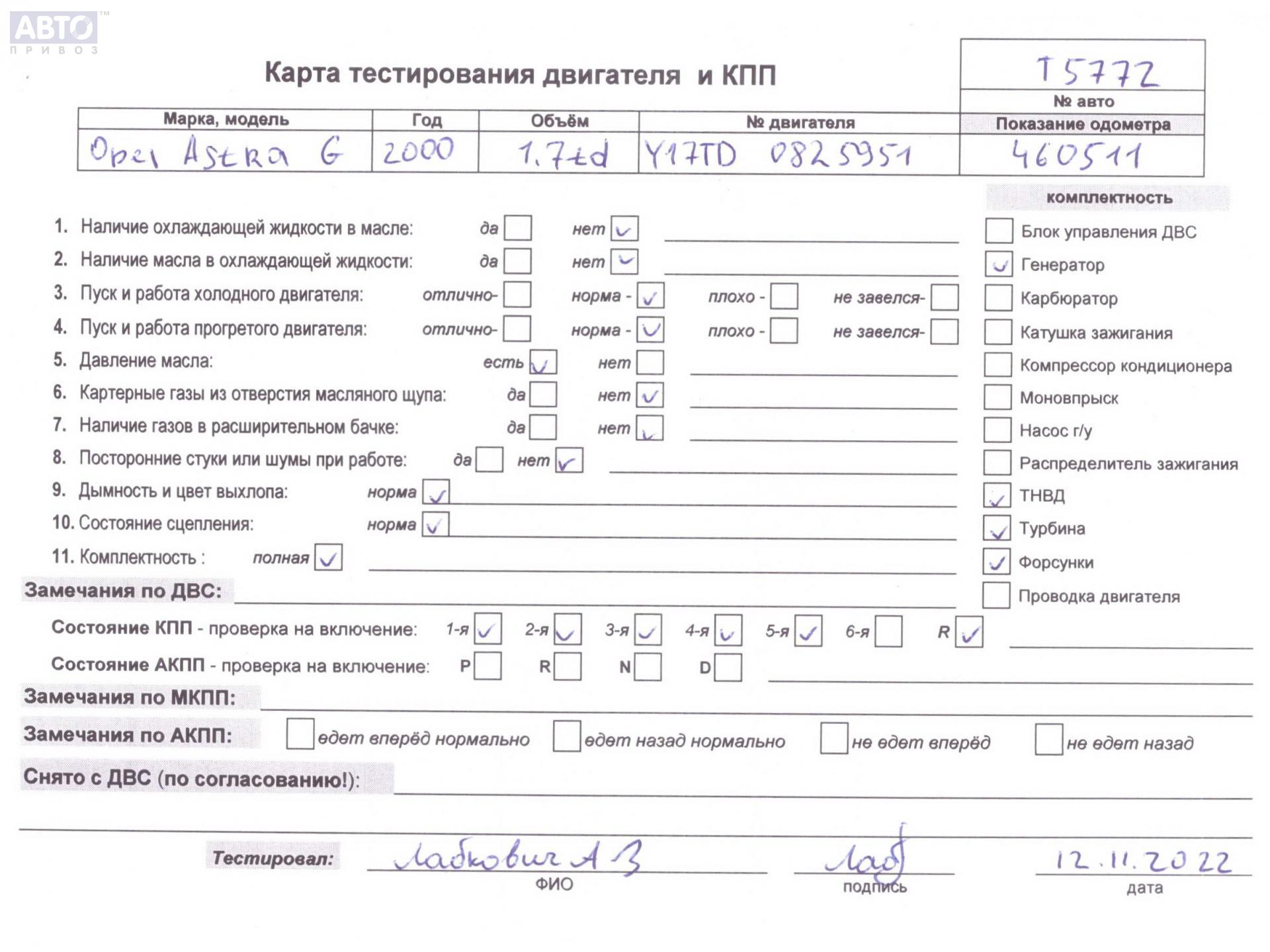 | Марка / Модель / Год: | Opel Astra G (1998-2004) 2000 |