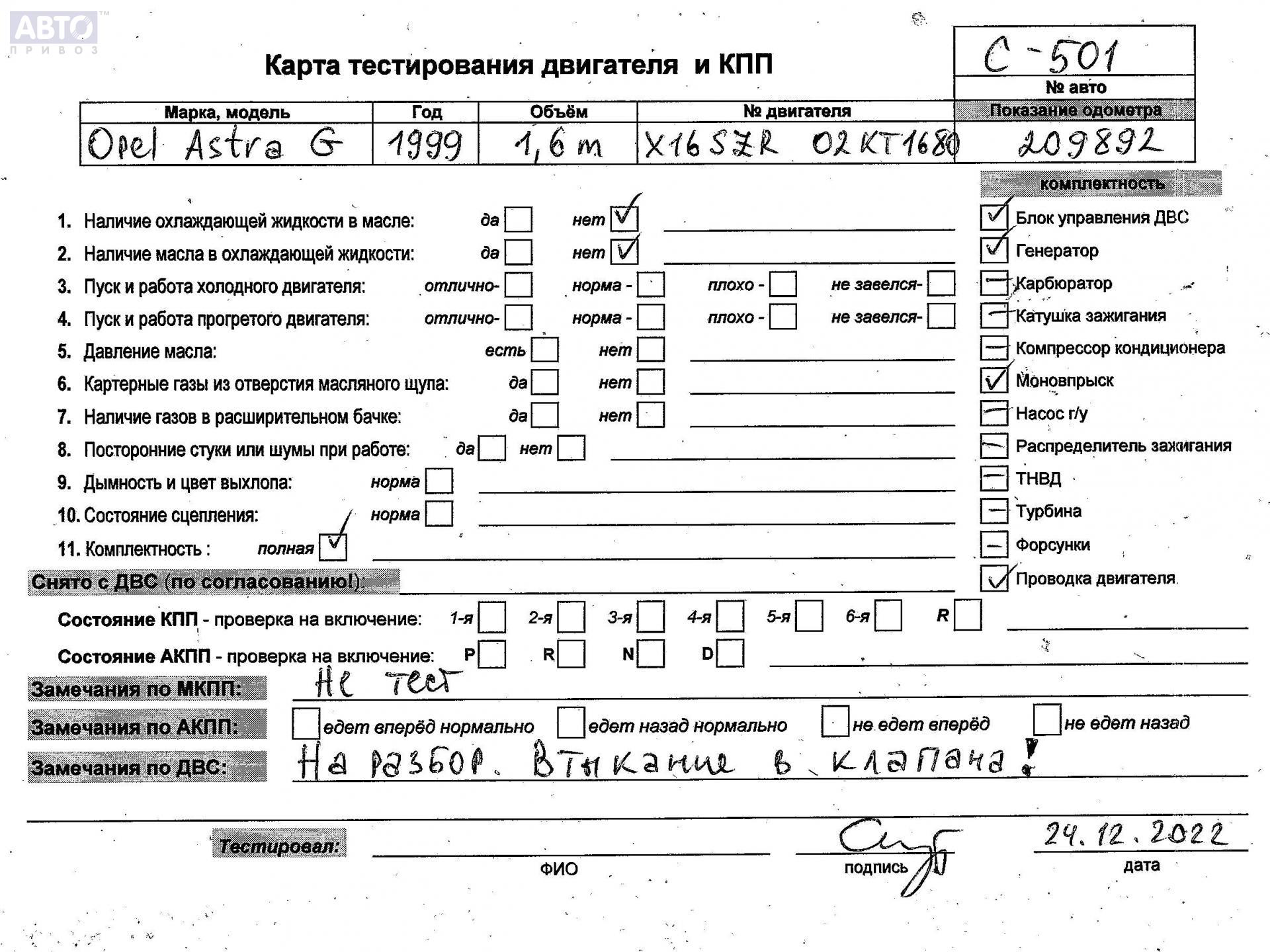 | Марка / Модель / Год: | Opel Astra G (1998-2004) 1999 |