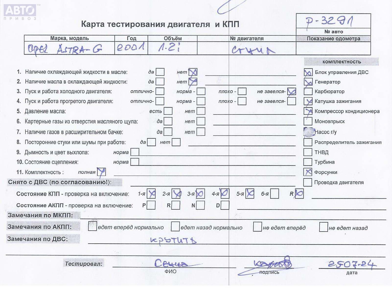 | Марка / Модель / Год: | Opel Astra G (1998-2004) 2001 |