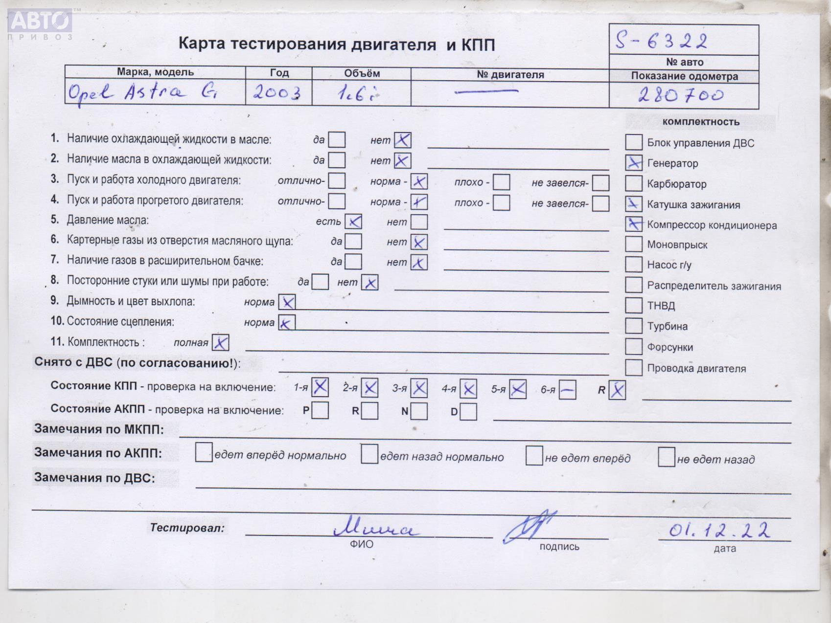 | Марка / Модель / Год: | Opel Astra G (1998-2004) 2003 |