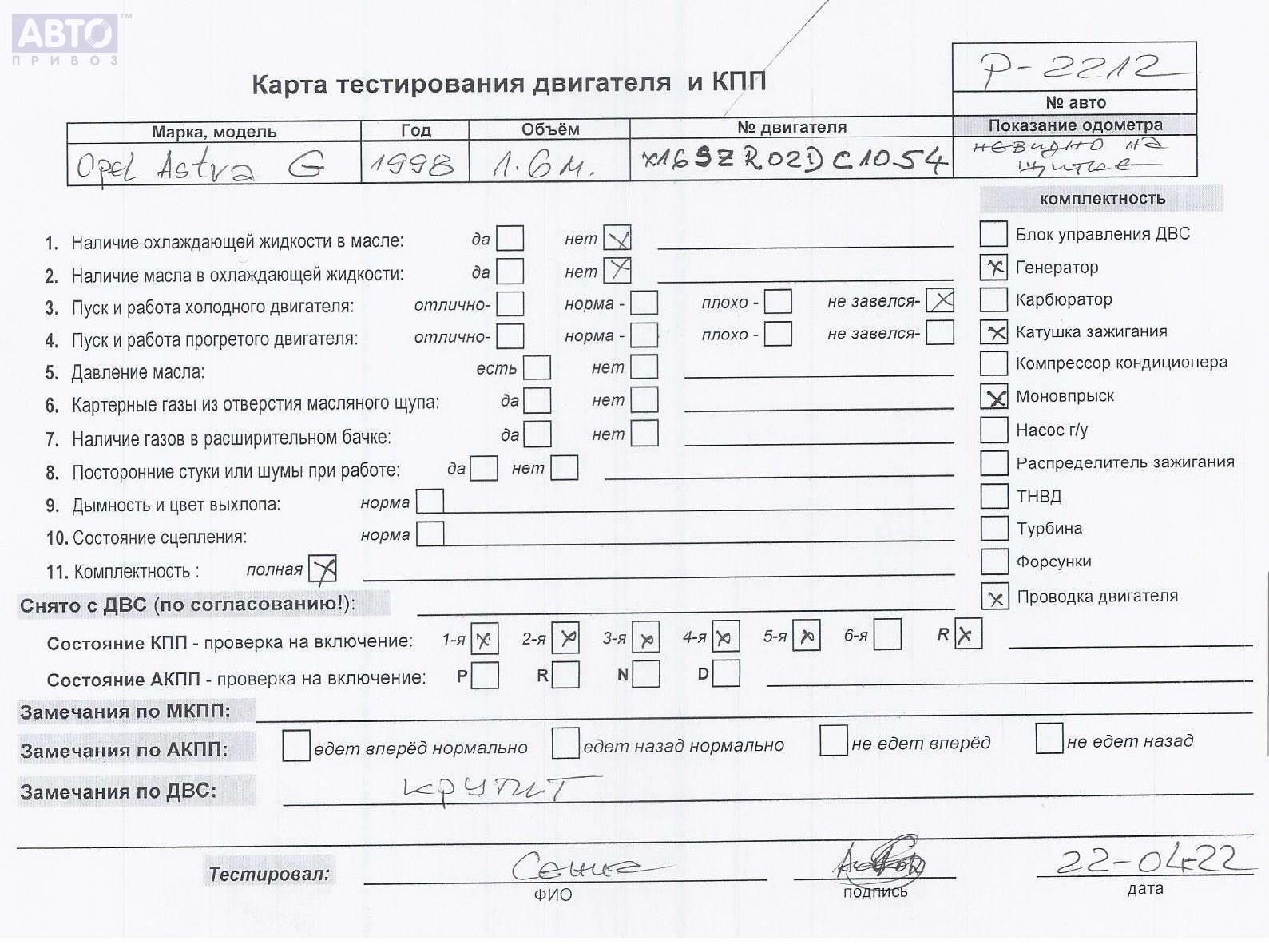 | Марка / Модель / Год: | Opel Astra G (1998-2004) 1998 |