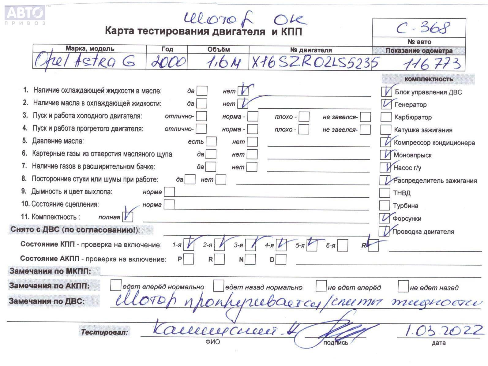 | Марка / Модель / Год: | Opel Astra G (1998-2004) 2000 |