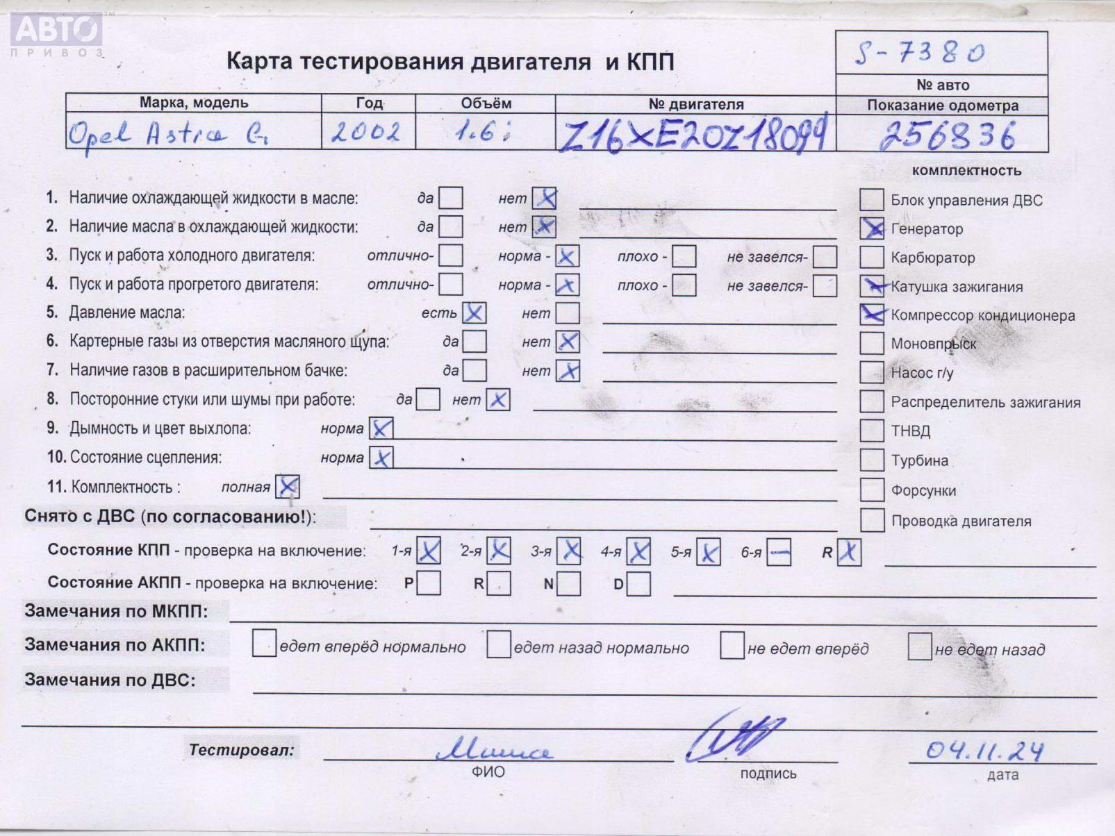 | Марка / Модель / Год: | Opel Astra G (1998-2004) 2002 |