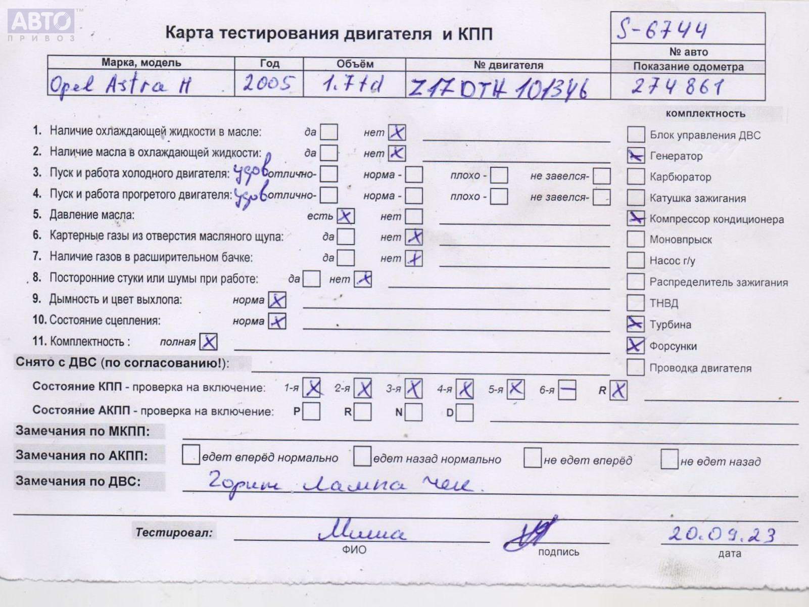 | Марка / Модель / Год: | Opel Astra H (2004-2009) 2005 |