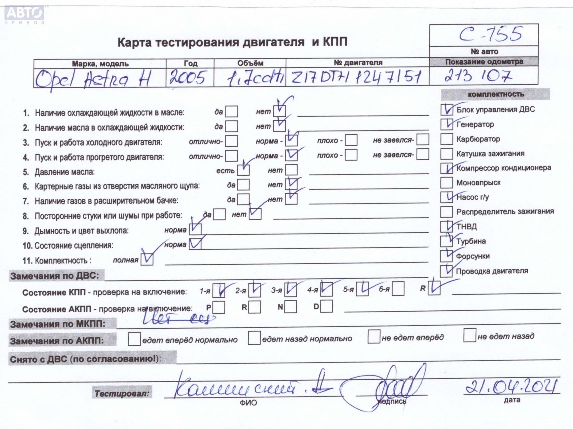 | Марка / Модель / Год: | Opel Astra H (2004-2009) 2005 |