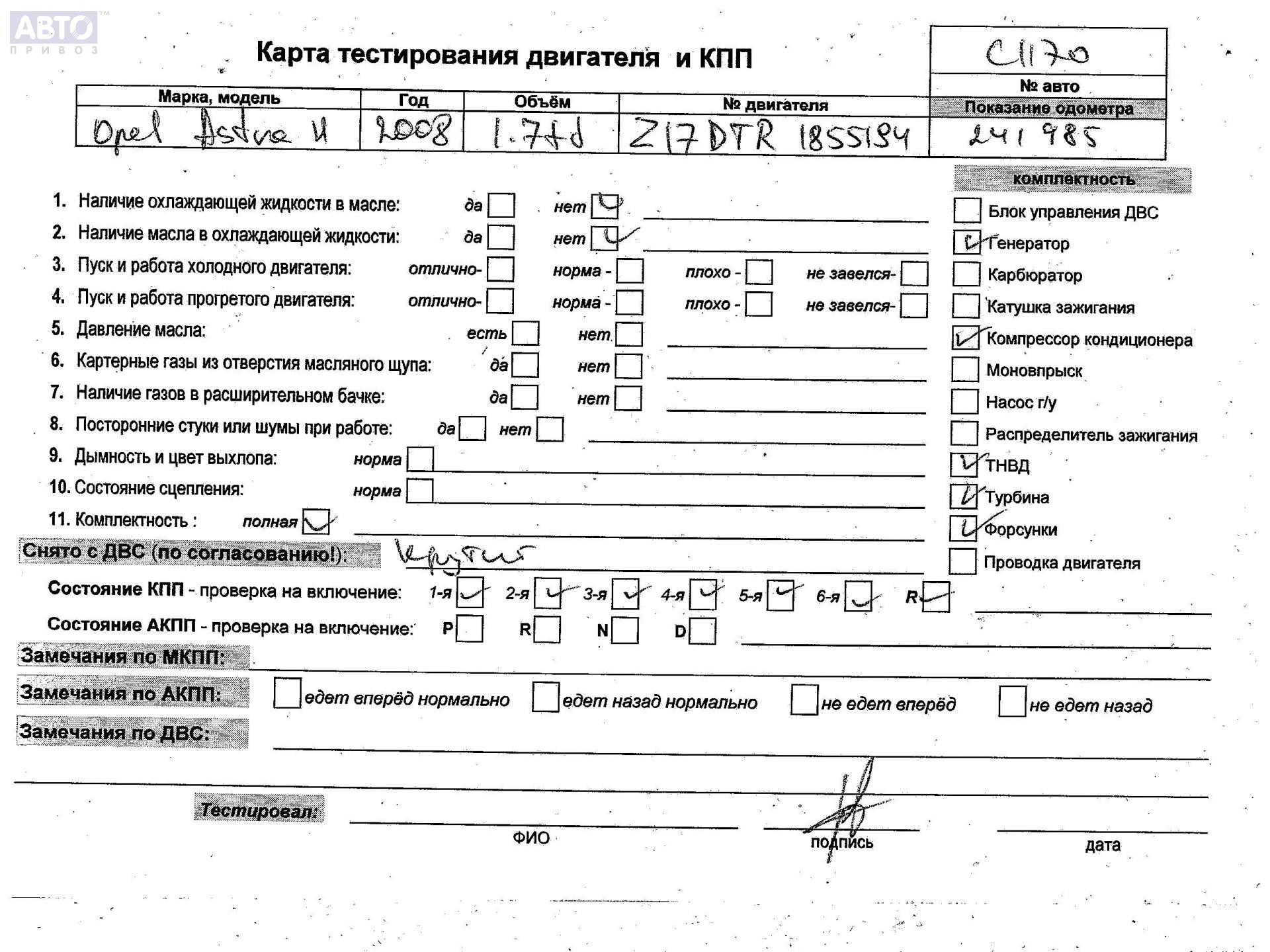 | Марка / Модель / Год: | Opel Astra H (2004-2009) 2008 |