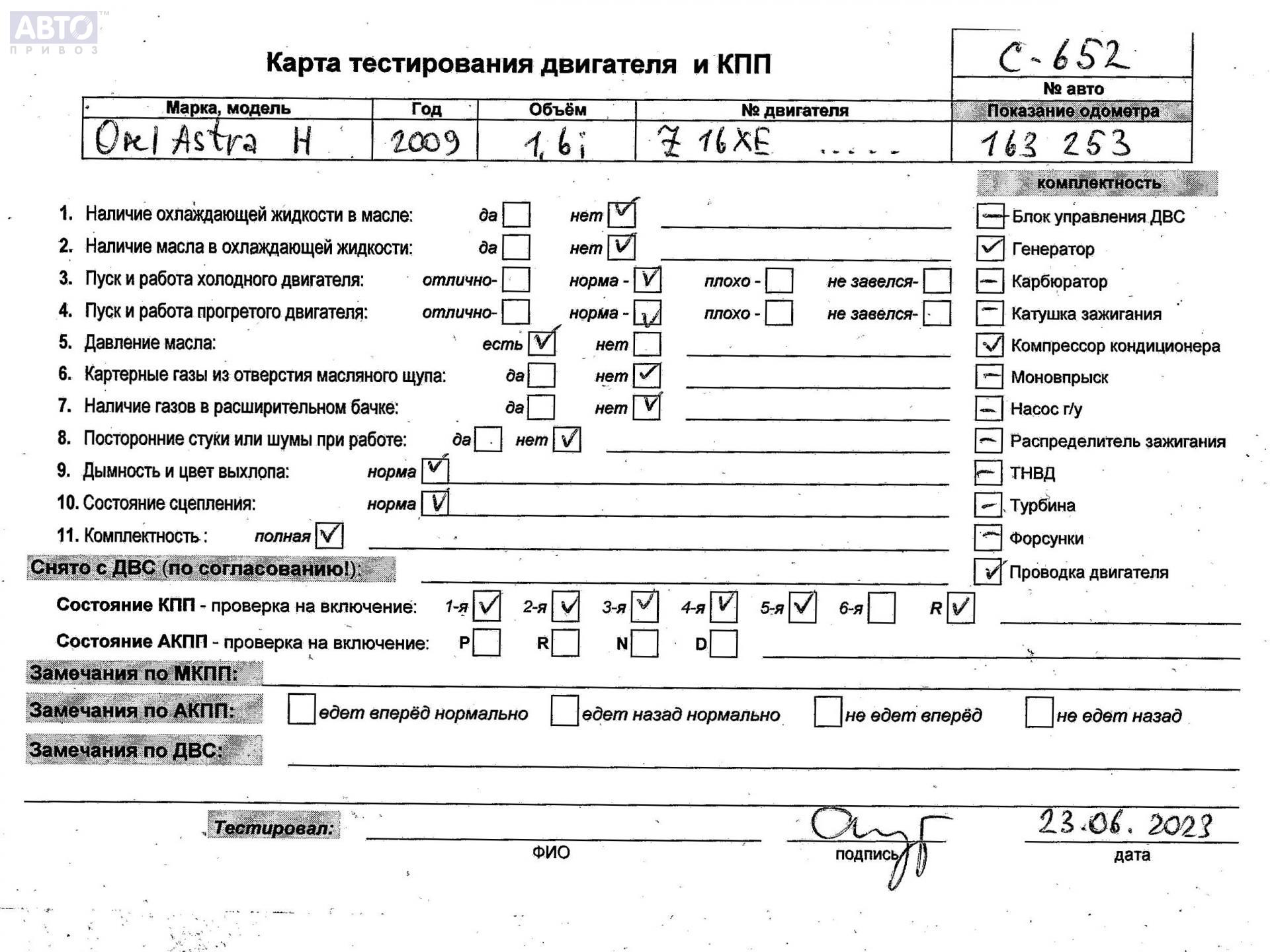 | Марка / Модель / Год: | Opel Astra H (2004-2009) 2009 |