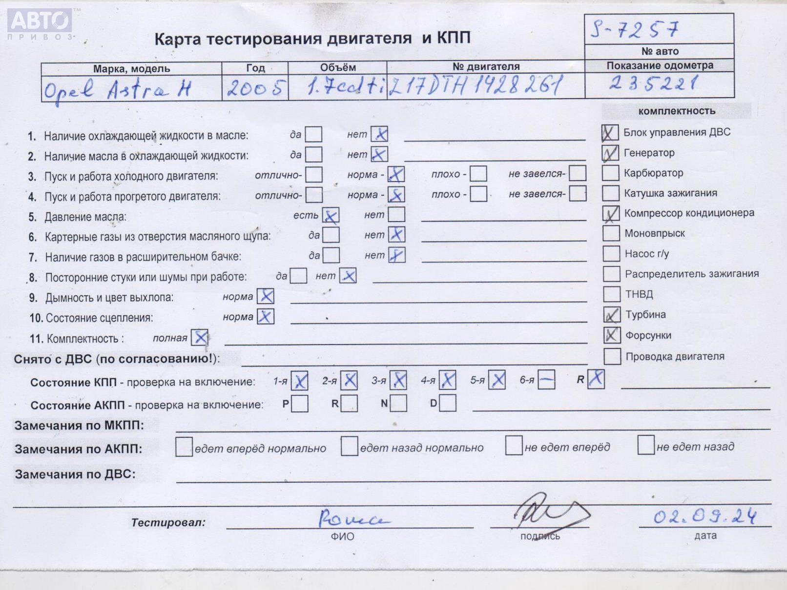 | Марка / Модель / Год: | Opel Astra H (2004-2009) 2005 |