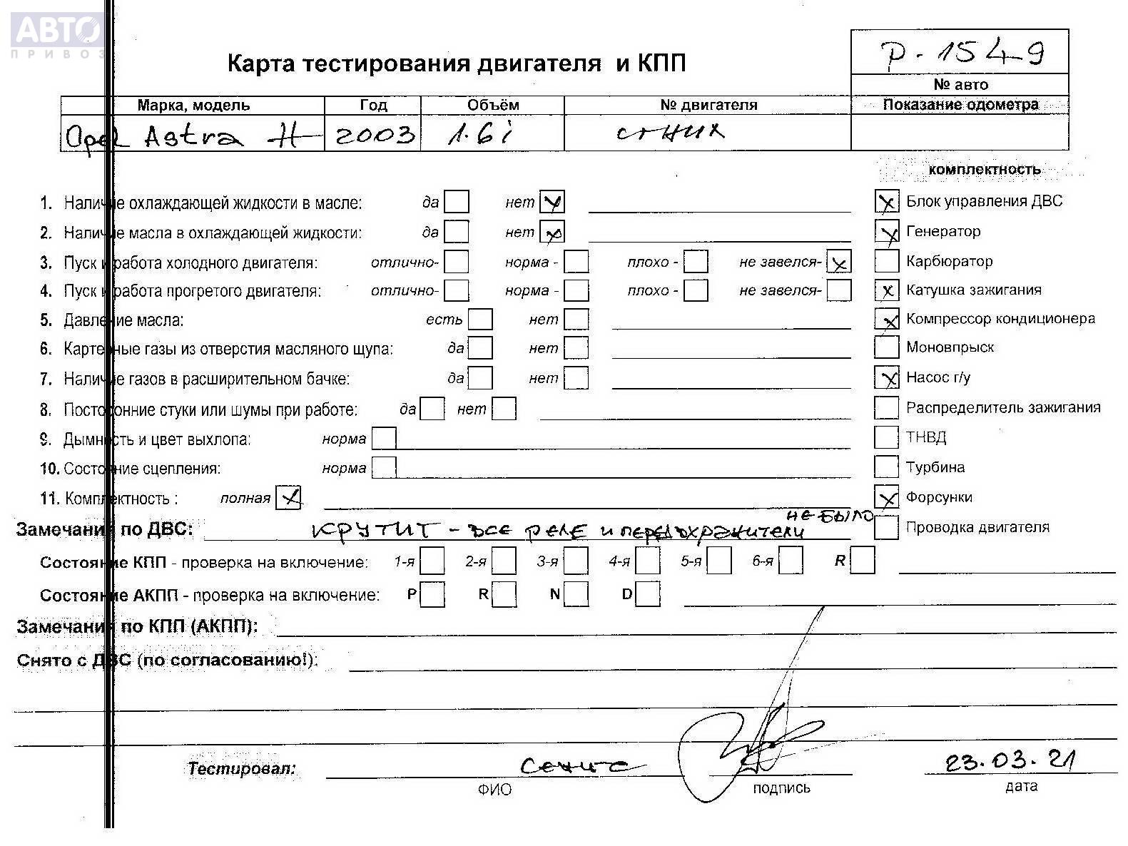 | Марка / Модель / Год: | Opel Astra H (2004-2009) 2004 |