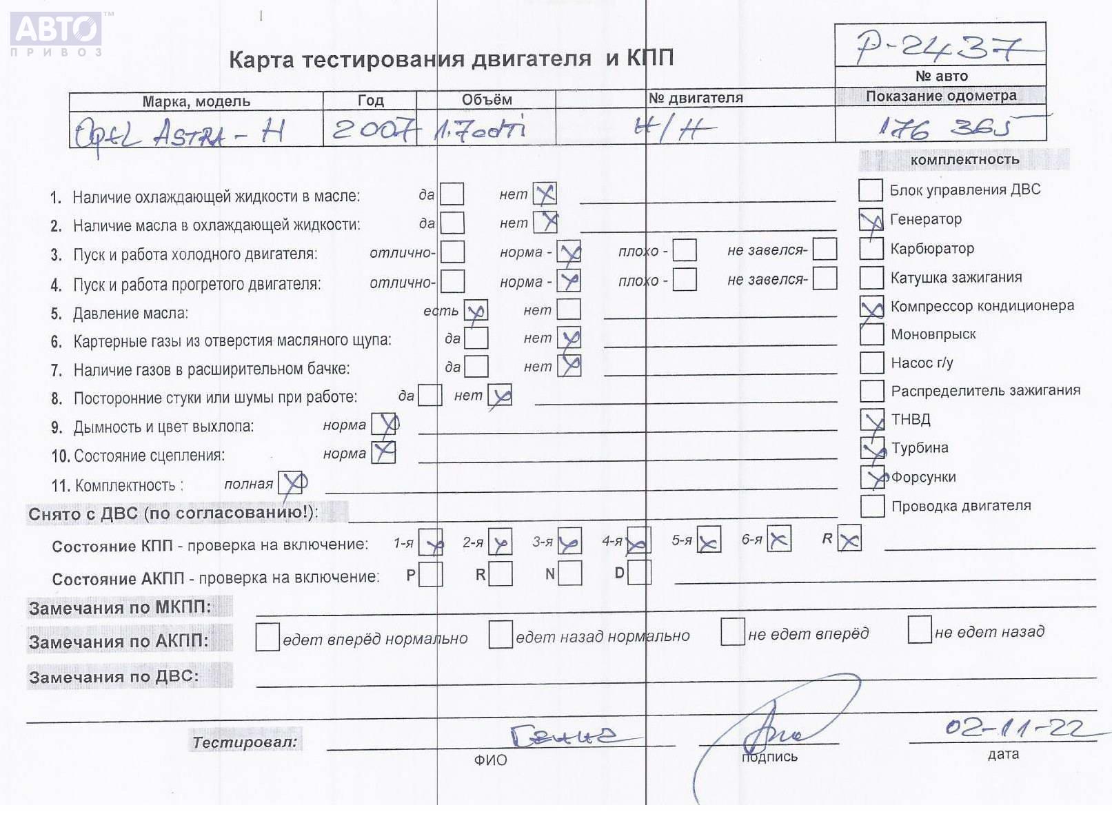 | Марка / Модель / Год: | Opel Astra H (2004-2009) 2007 |