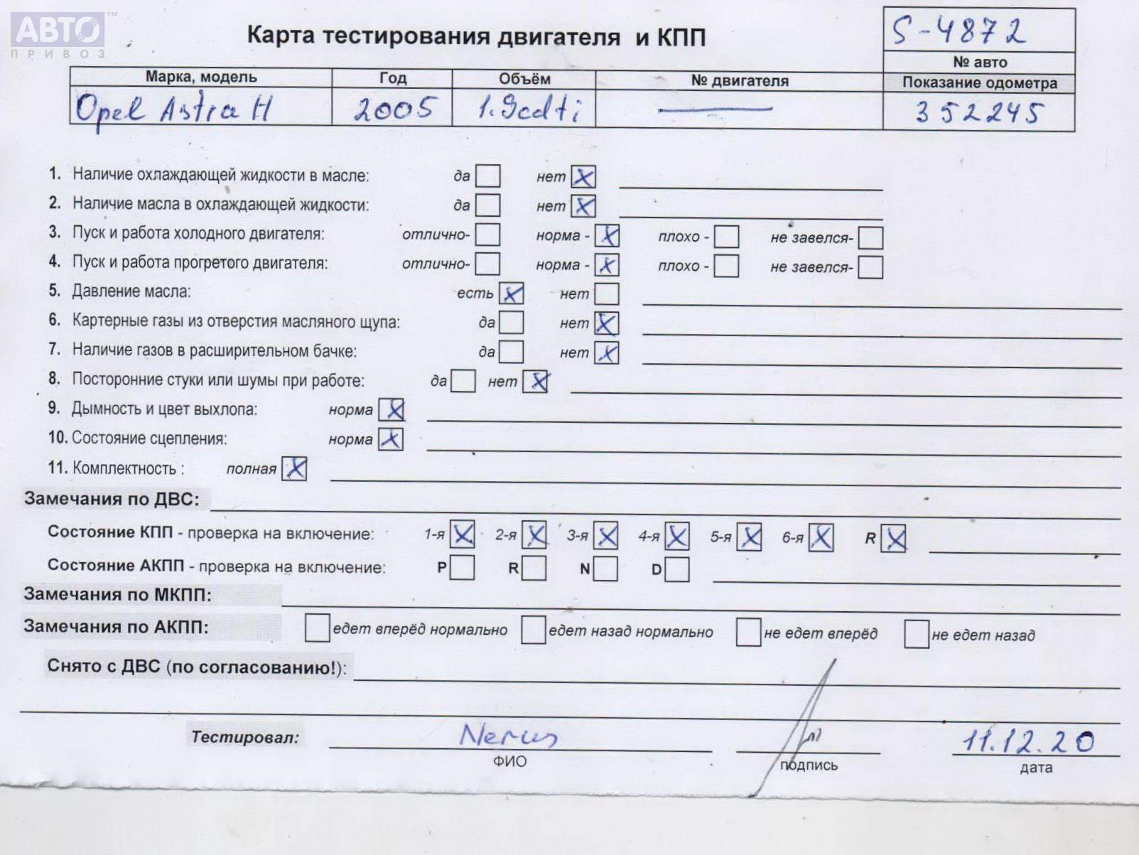 | Марка / Модель / Год: | Opel Astra H (2004-2009) 2005 |