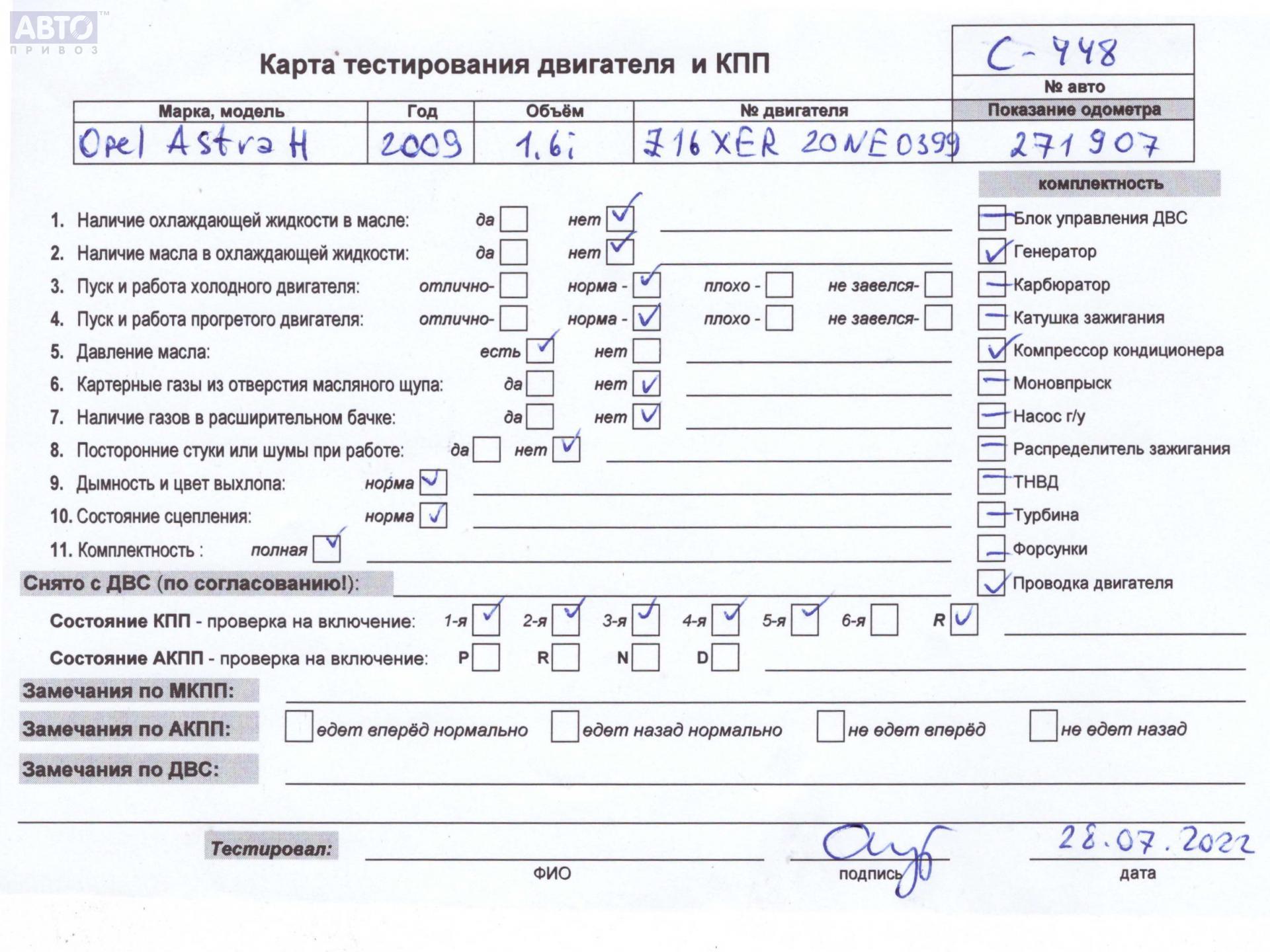| Марка / Модель / Год: | Opel Astra H (2004-2009) 2009 |