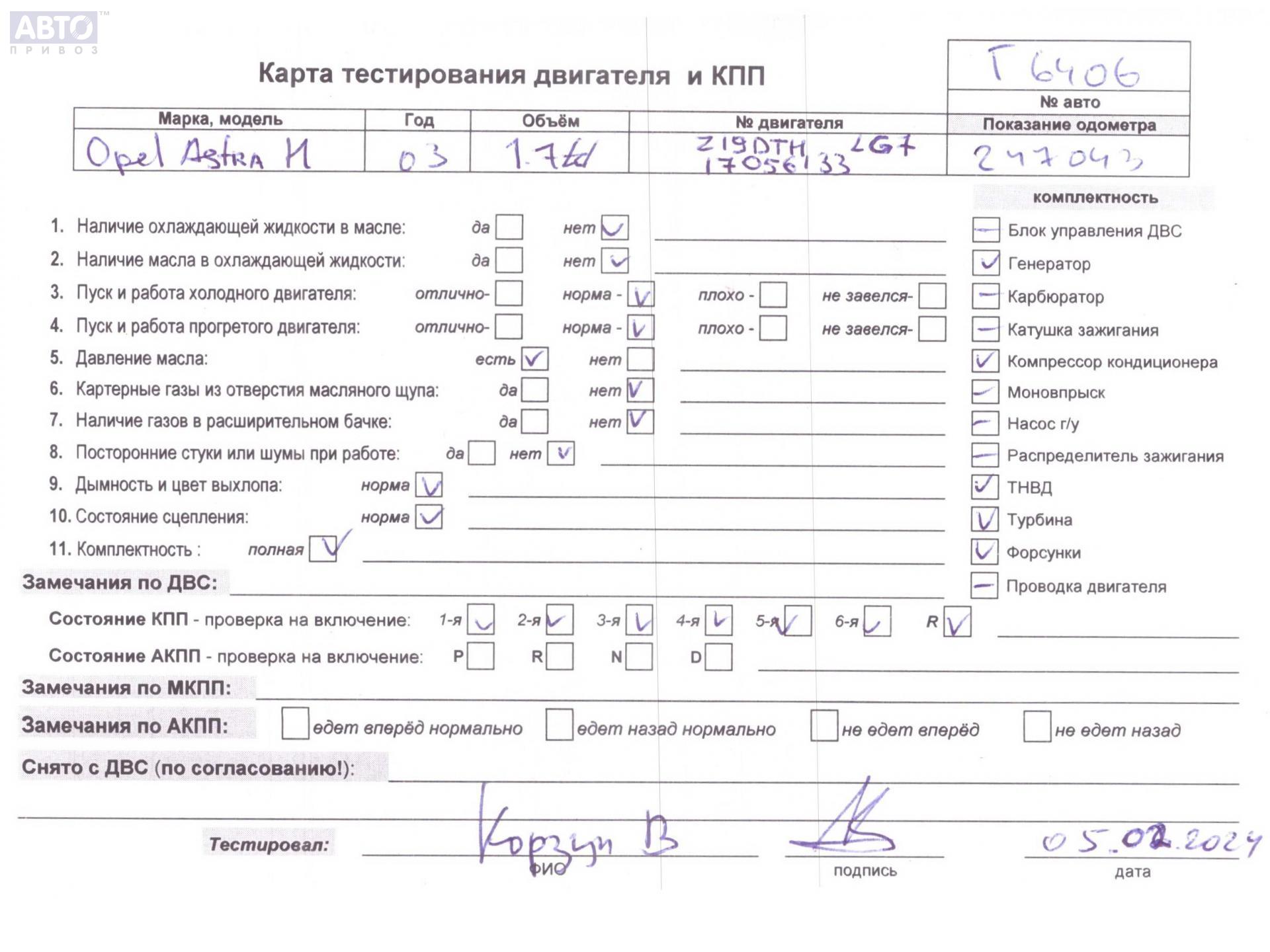 | Марка / Модель / Год: | Opel Astra H (2004-2009) 2005 |